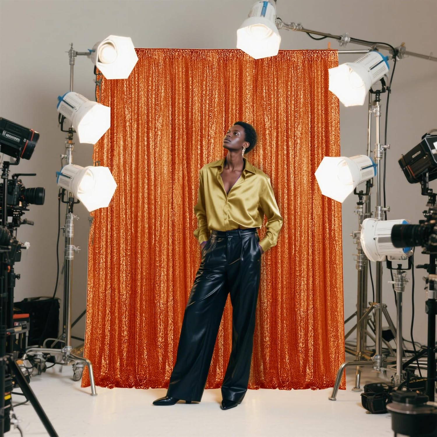 Orange Sequin Backdrop Curtain 2 Pieces 2FTx8FT Glitter Photography Backdrop for Party Wedding Birthday Christmas Decorations