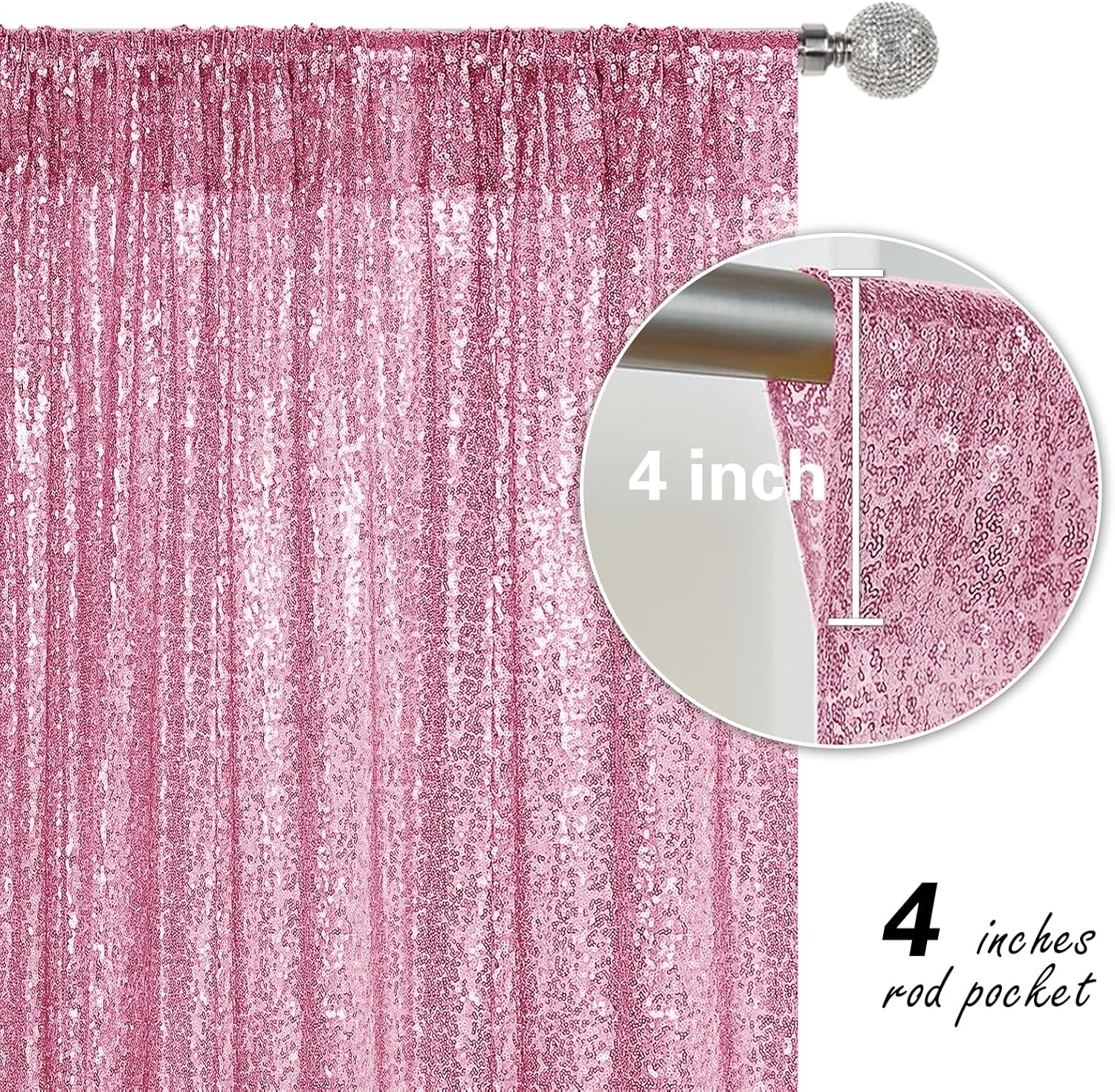 Pink Sequin Backdrop Curtain 4 Pieces 2FTx8FT Glitter Photography Backdrop for Party Wedding Birthday Christmas Decorations