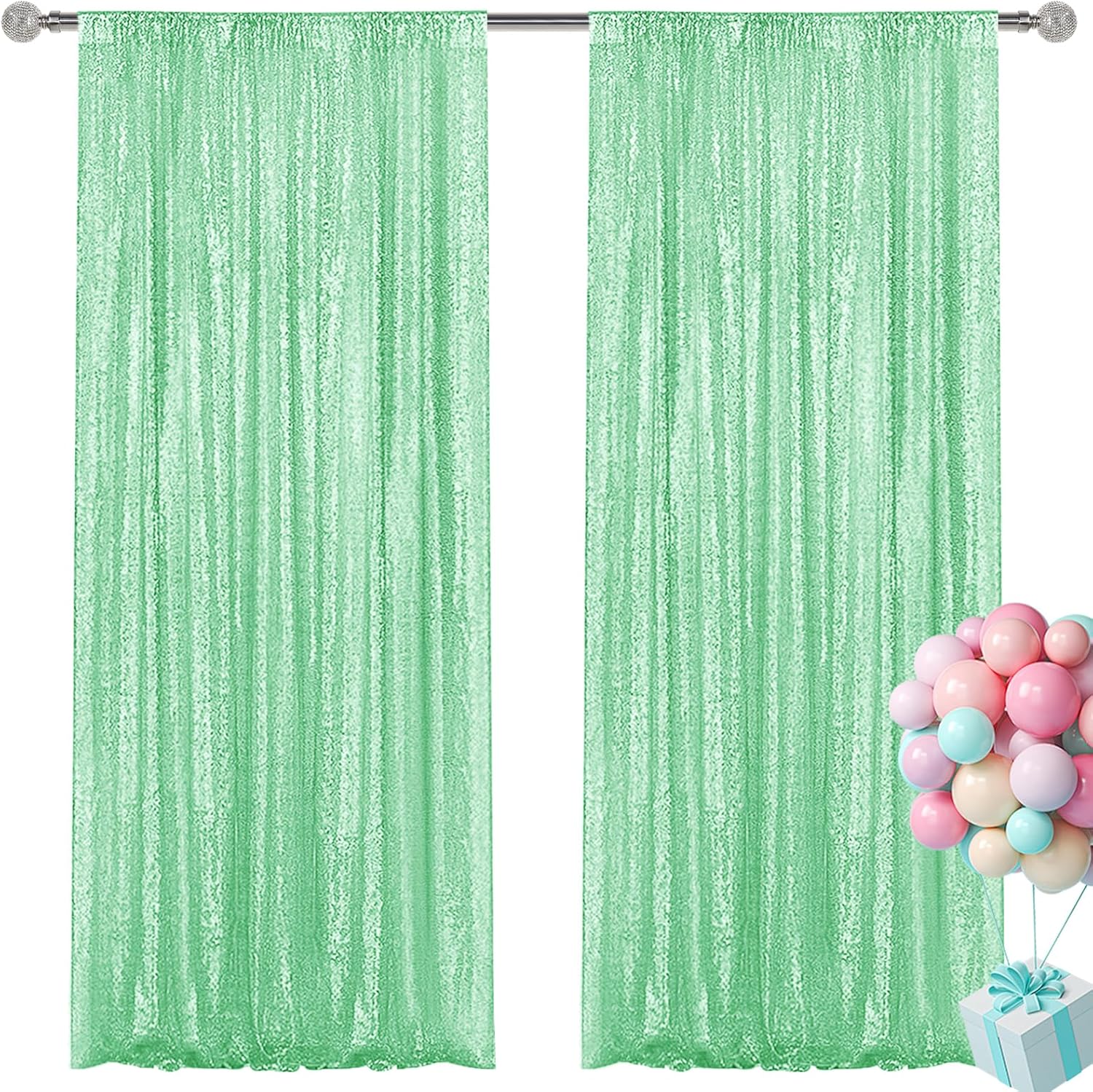 Mint Green Sequin Backdrop Curtain 2 Pieces 2FTx8FT Glitter Photography Backdrop for Party Wedding Birthday Christmas Decorations