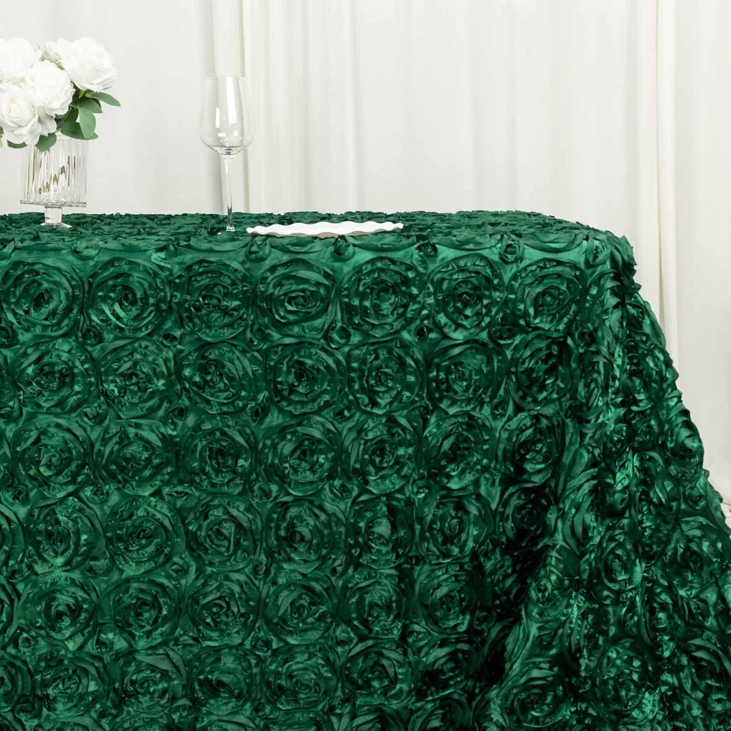 Efavormart 90"X132" Hunter Emerald Green Grandiose 3D Rosette Satin Rectangle Tablecloth for Wedding Party Event