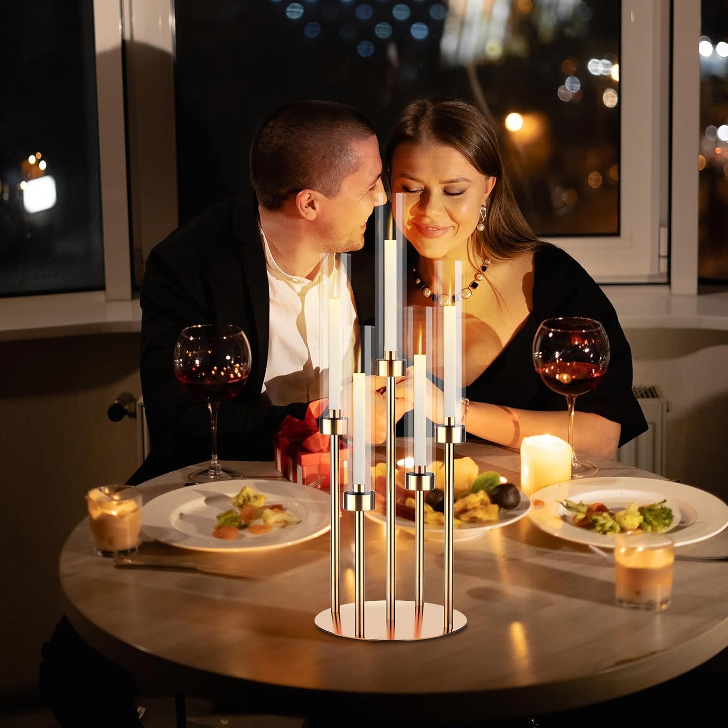 - WIDELY USED: Our 5 arms gold candle sticks holder is perfect for weddings and parties, which can add a romantic atmosphere, of course, you can also use it to decorate the living room room, which can add a warm atmosphere