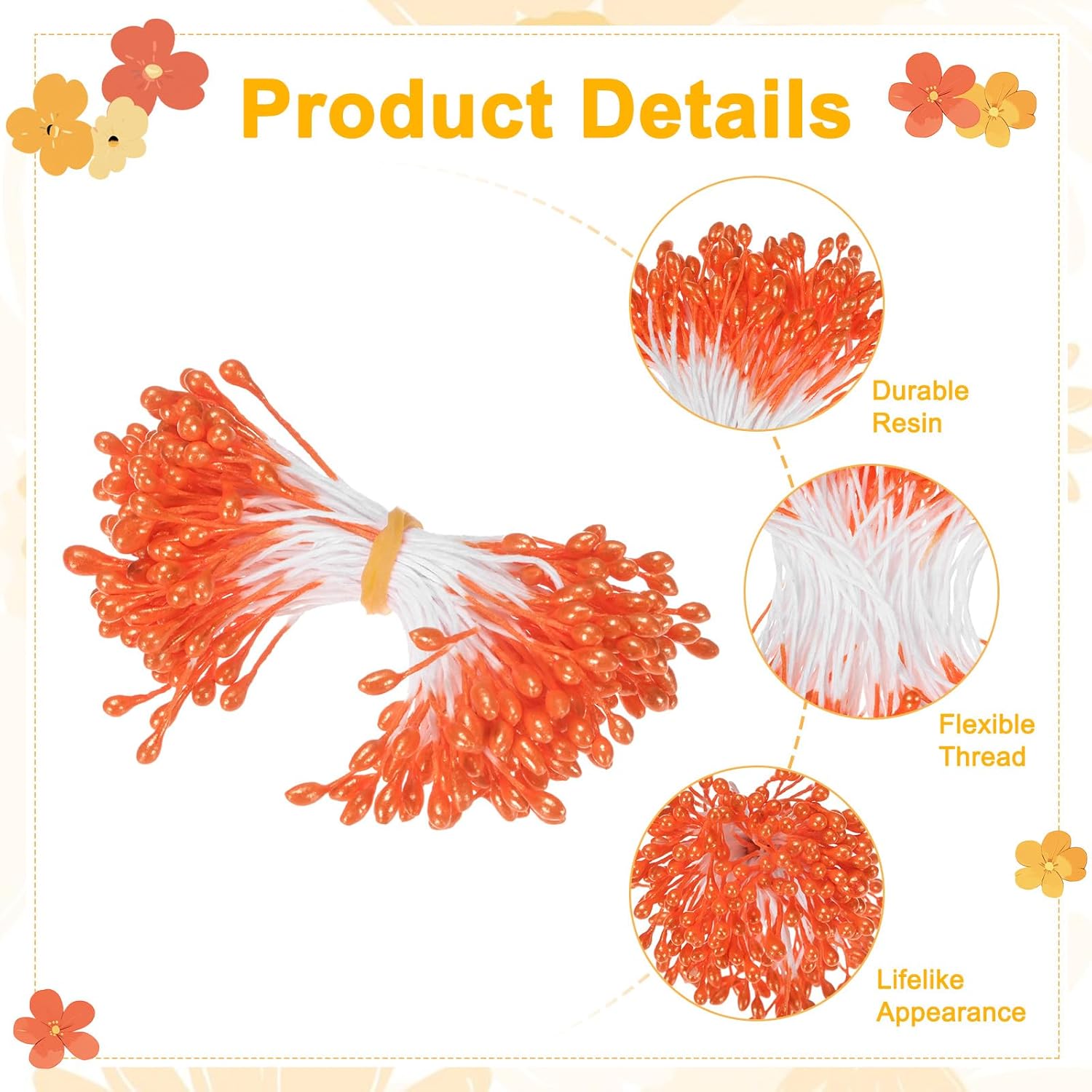600-Pack Flower Stamens for Crafts, 5mm Double Heads Artificial Pearl Floral Pistil Mini Flower Pollens Stamens for DIY Making/Wedding/Scrapbook Decoration [Orange]