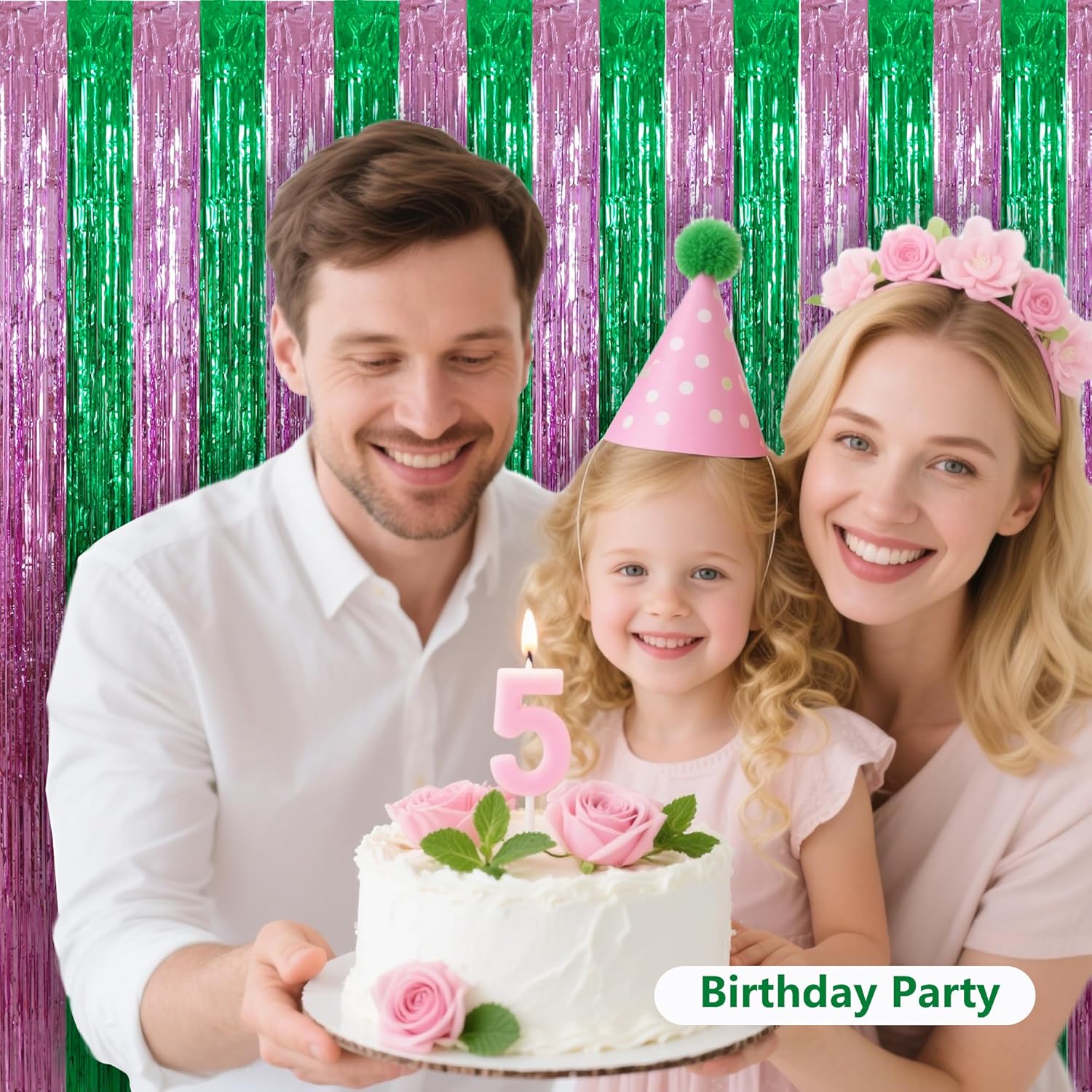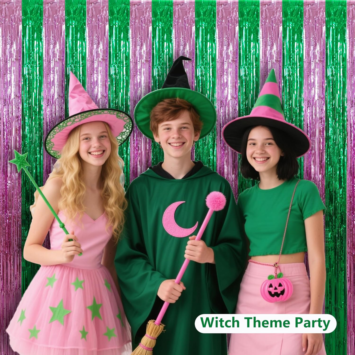 BEISHIDA Pink Green Door Streamers Backdrop Foil Fringe Tinsel Party Streamers Curtains Photo Backdrop for Birthday Graduation Wicked Party Decoations
