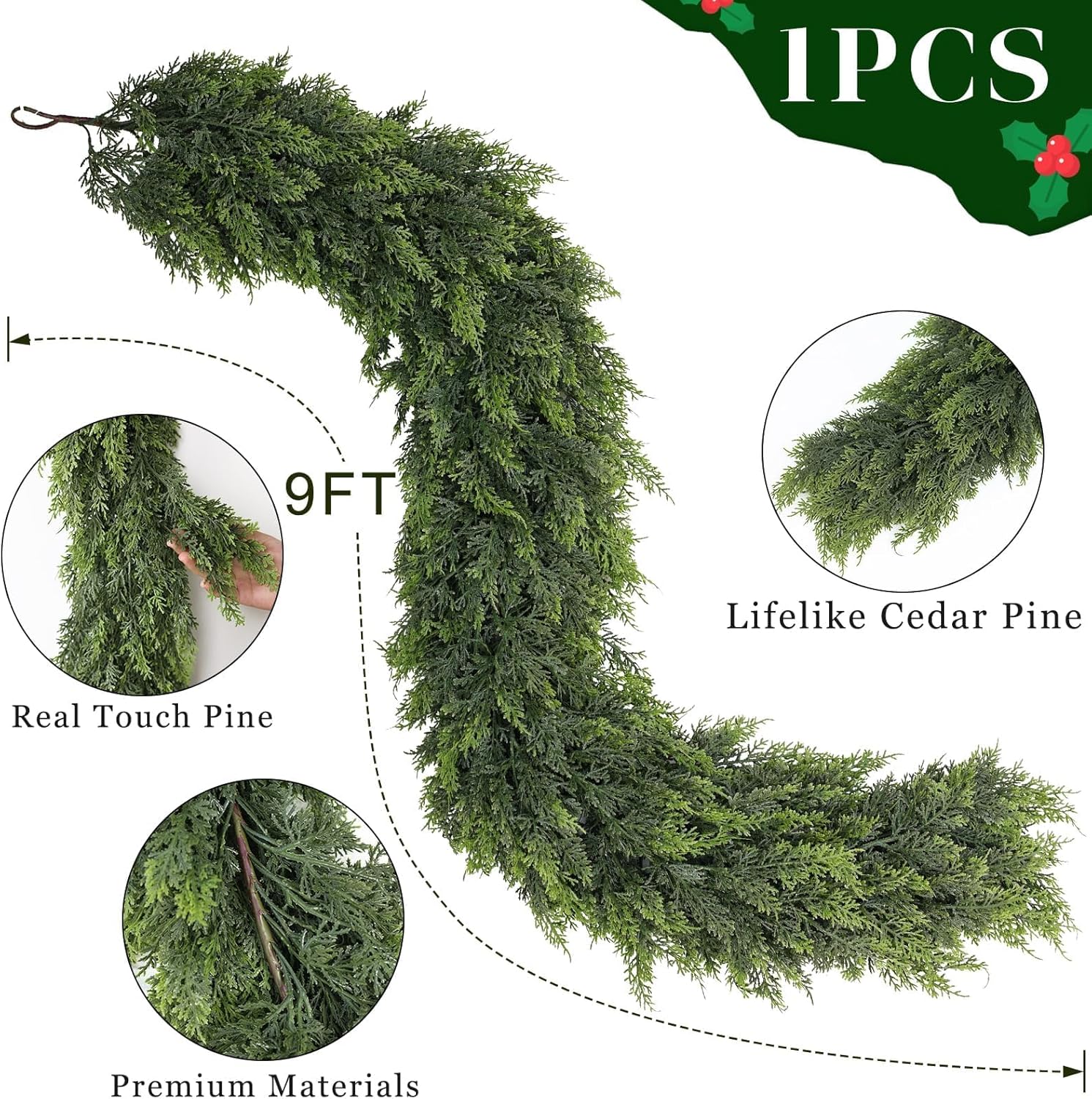 - 【Quantity and Size】: The package includes 1 piece of cedar garland, approximately 9 feet in length, perfect for fireplace of decorative needs.