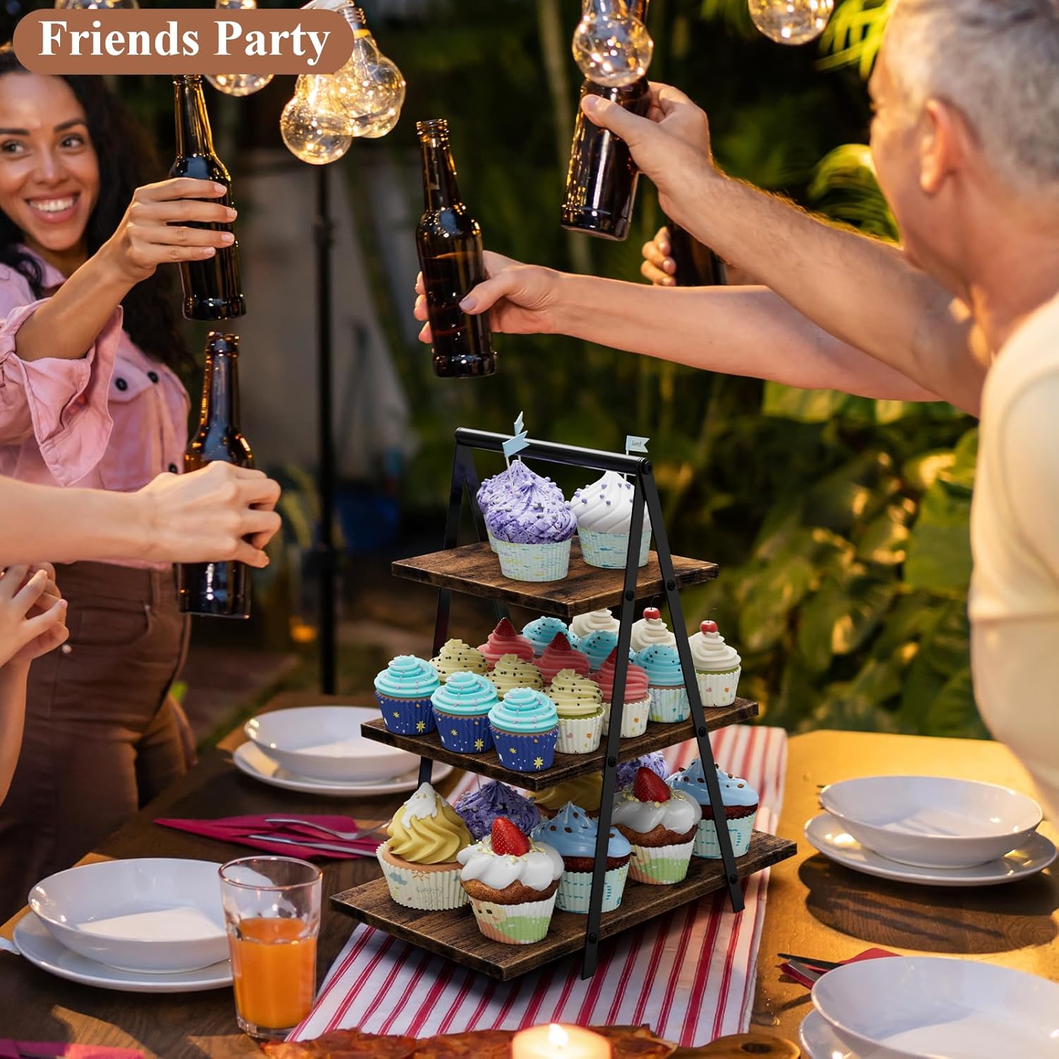 - 【Sturdy & Stable】: This cupcake display stand is both stylish and stable when displaying cupcakes. Made of thickened MDF board and a sturdy triangular metal frame, this dessert table display set with stands both casual handling and extended use. A handle on top makes it easy to reach. It's the perfect choice for parties.