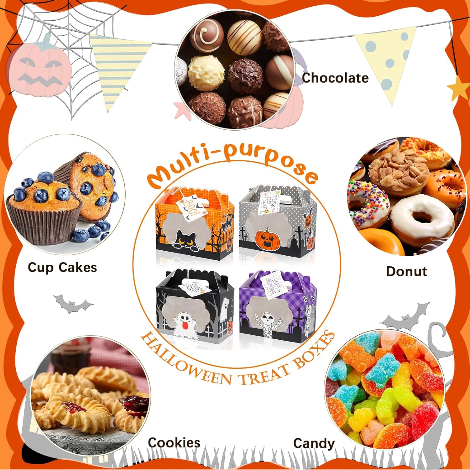 24 Pack Halloween Treat Boxes, Trick or Treat Candy Boxes with Window Halloween Party Favors Gift Goodie Boxes Supplies for Cookie Biscuit Donuts Dessert Cupcake Pie