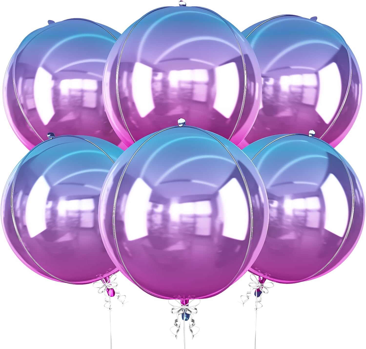- Package: You will receive 6pcs 22inch 4D gradient purple round foil balloon, 1 straw + 1 roll of ribbon. This mylar balloons purple are perfect for your purple iridescent themed party.