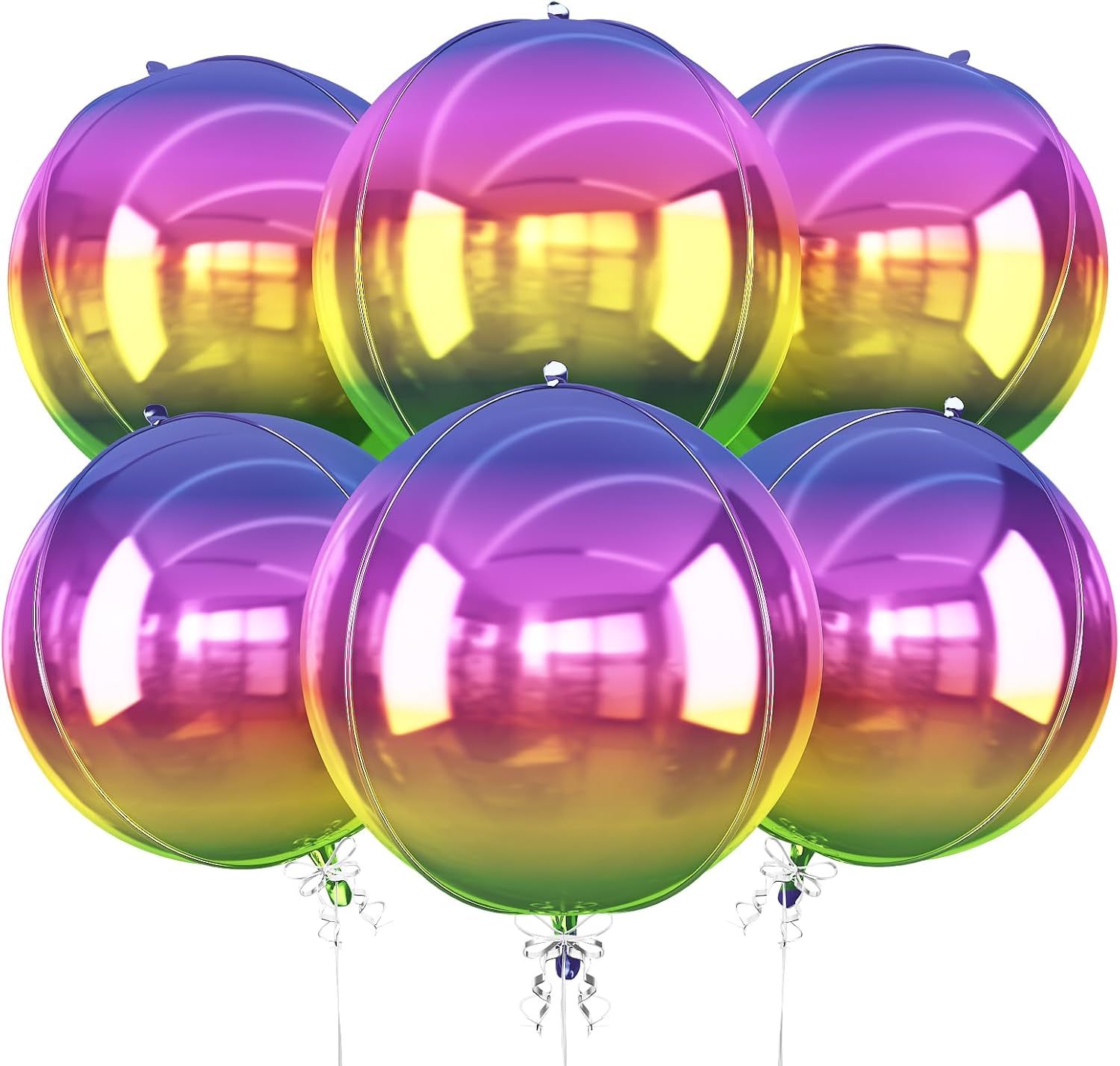 - Package: You will receive 6pcs 22inch 4D gradient rainbow round foil balloon, 1 straw + 1 roll of ribbon. This mylar balloons colorful rainbow are perfect for your rainbow themed party.