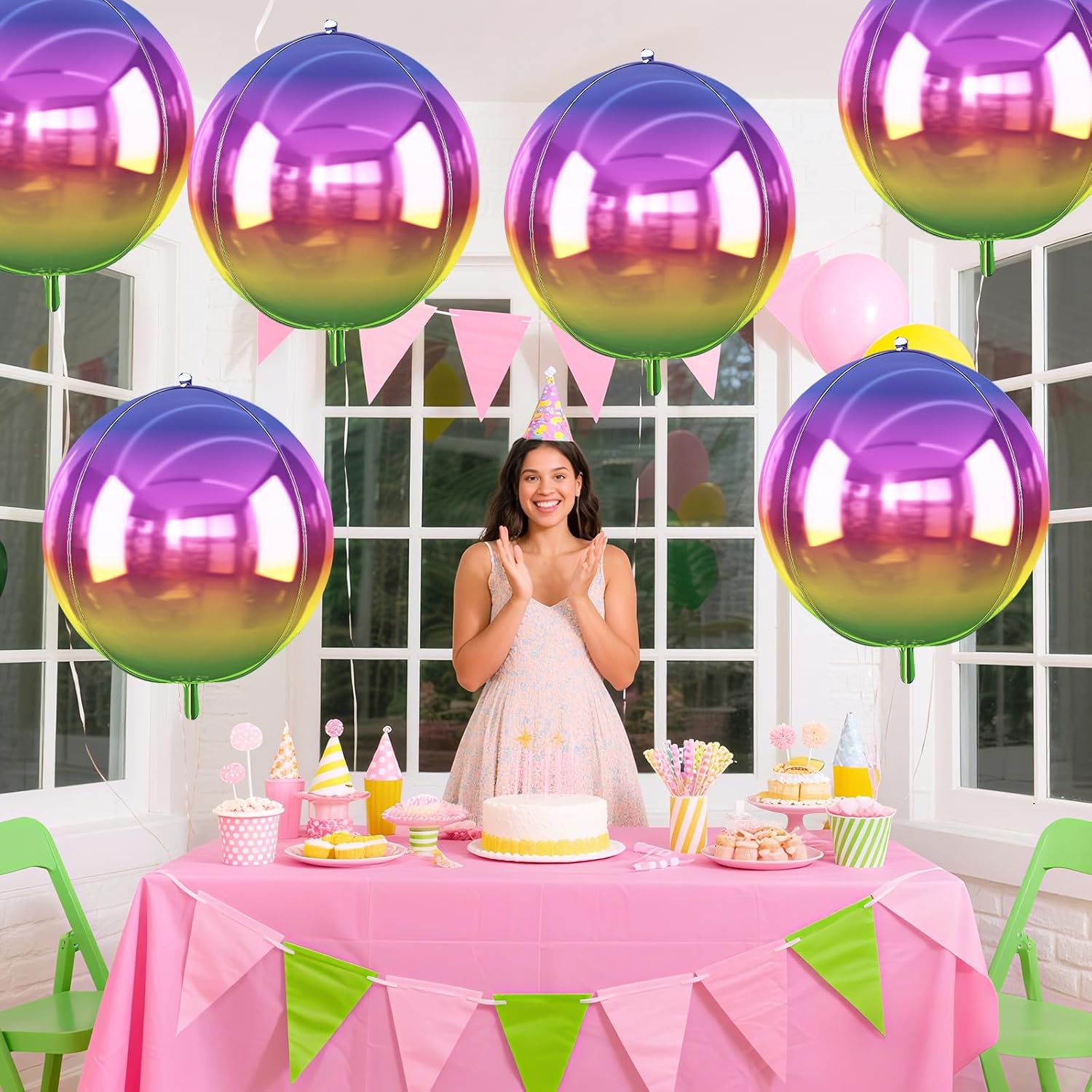 - Colorful: These gradient colorful round foil balloons will shine with a unique light, whether in the daytime or under the light, showing a colorful effect. They hold air for a long time, keeping your party shiny and sparkling.