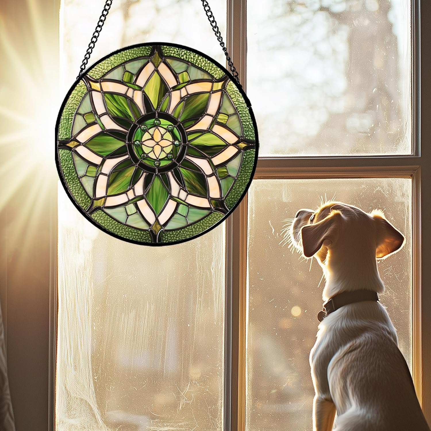 Stained Glass Window Hanging - White Green Boho Flower Suncatcher for Doors Window Home Sun Catchers Decor Christmas Mother's Day Birthday Gifts for Teacher Women Men Mom Nana 6.3 in