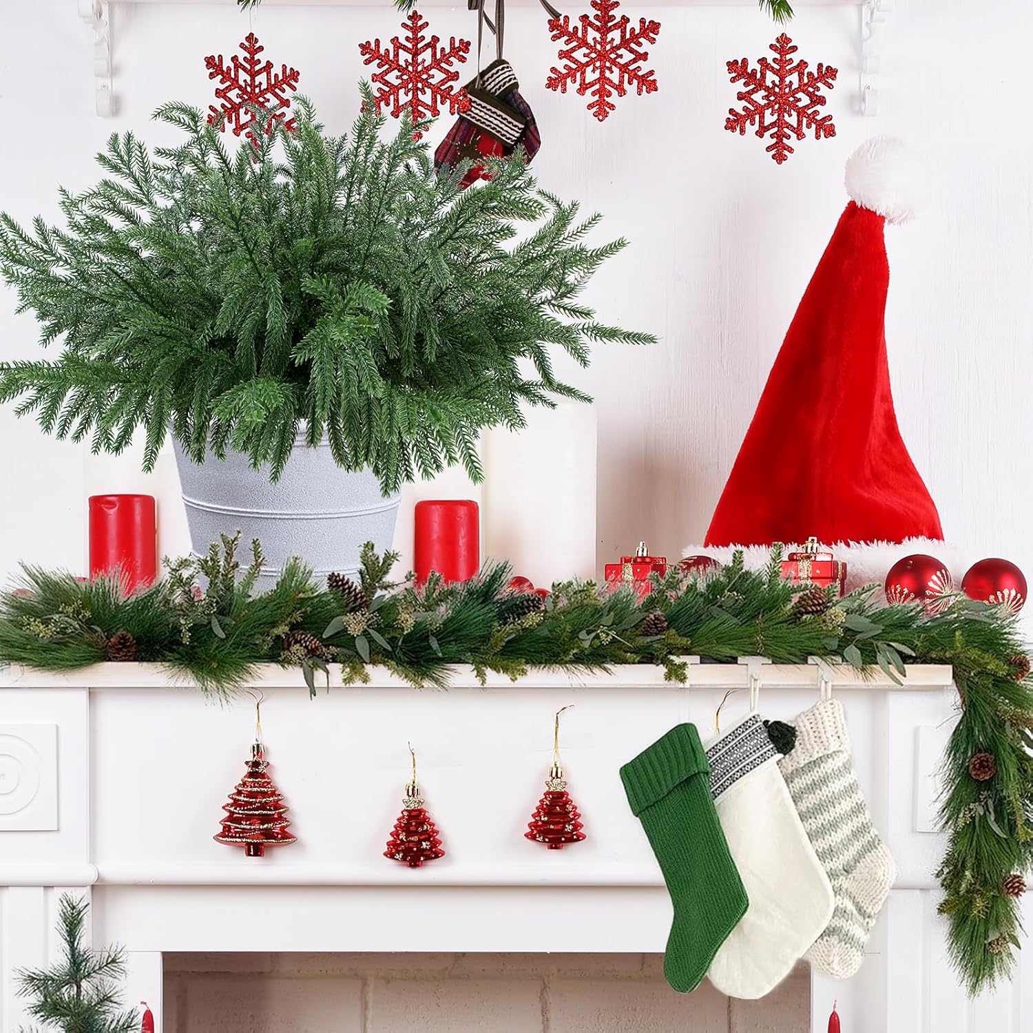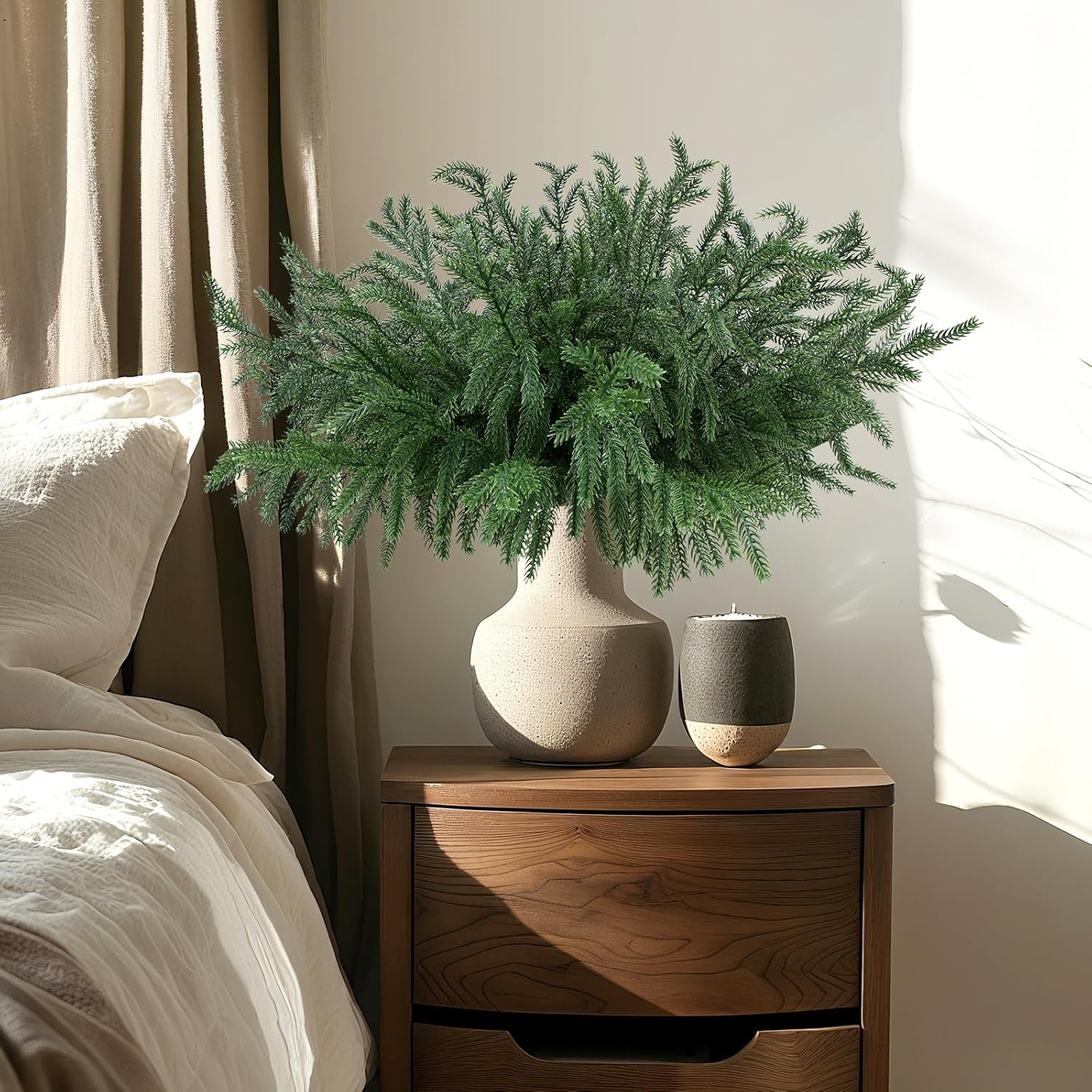 - 12Pcs Artificial Pine Branches: This set includes 12 pcs real touch Norfolk pine branches, giving you plenty for decorating. As shown, 12 branches can fill a vase for a full and lush look, and they’re also ideal for making Christmas wreaths or garlands