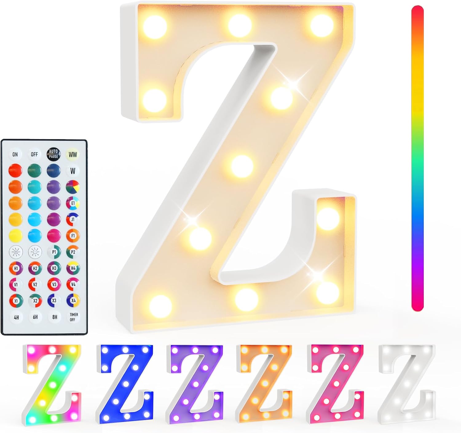 Pooqla Colorful Light Up Letters with Remote, Upgraded 35 Colors LED Marquee Letters, RGB Lighted Letter for Girls Teenager Gift, Birthday, Party, Wedding, Night Light, Room, Bedroom Decor, Letter Z