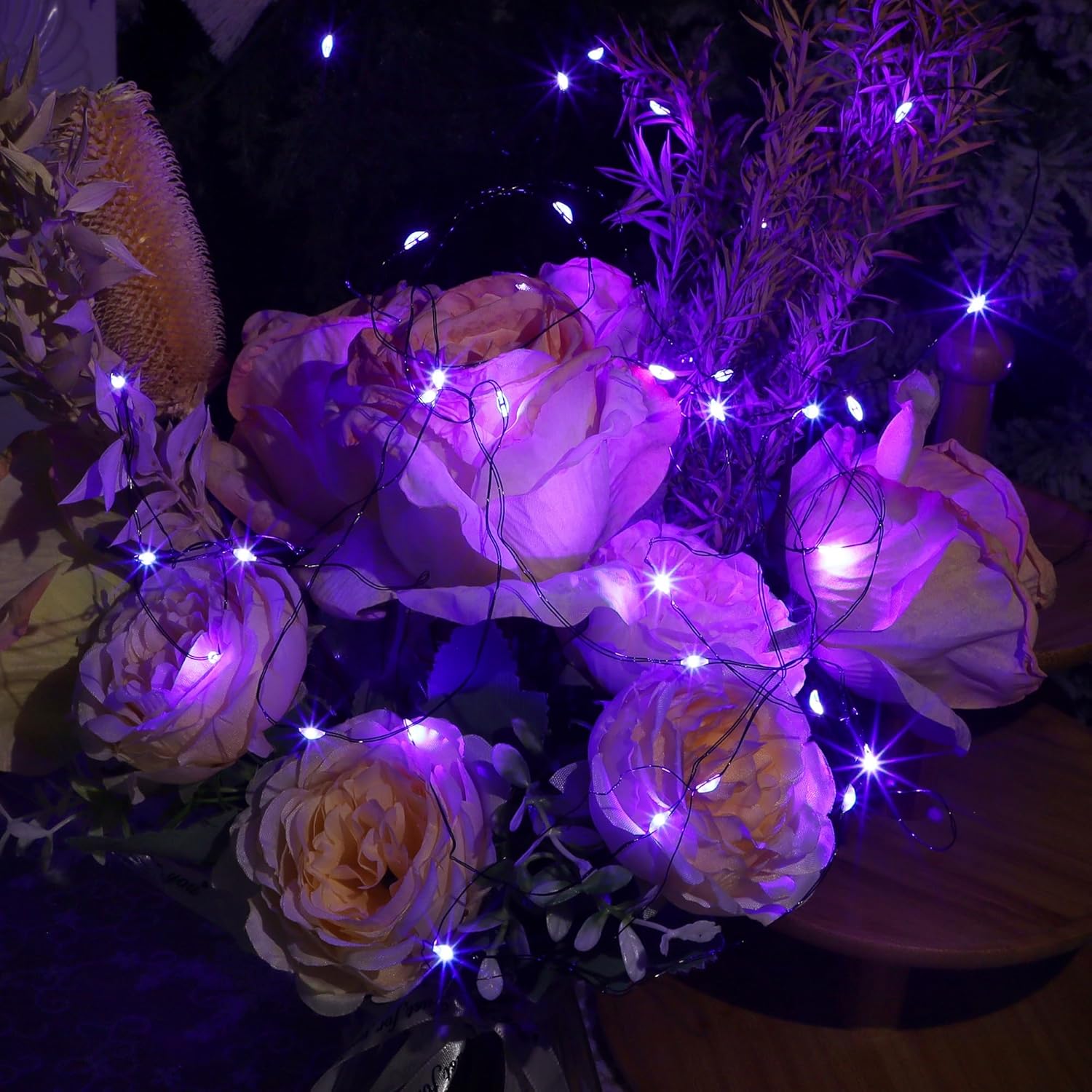 - 12 Pack Halloween Mini Fairy String Lights: Our 12 pack purple mini string lights with battery operated, made of flexible copper wire that can be easily bent and shaped easily. The sturdy wire and LEDs make the lights perfect for long daily use. Glow a bright light to makes every night starry night, adding much whimsical ambiance in your space