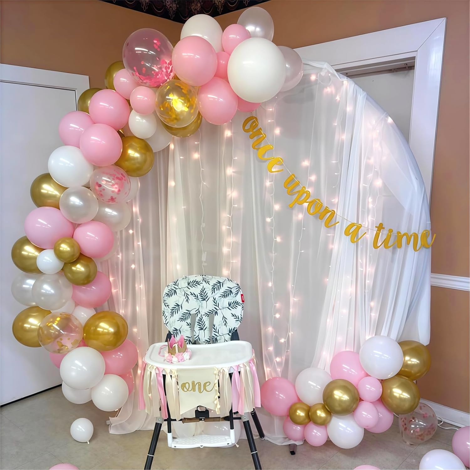- What You Will Get - Our pink and gold balloons kit includes 20 pcs light pink balloons, 10 pcs gold metallic balloons,10 pcs gold confetti balloons, 10 pcs pink confetti balloons,10 pcs white balloons,1 pink ribbon and 1 white ribbon