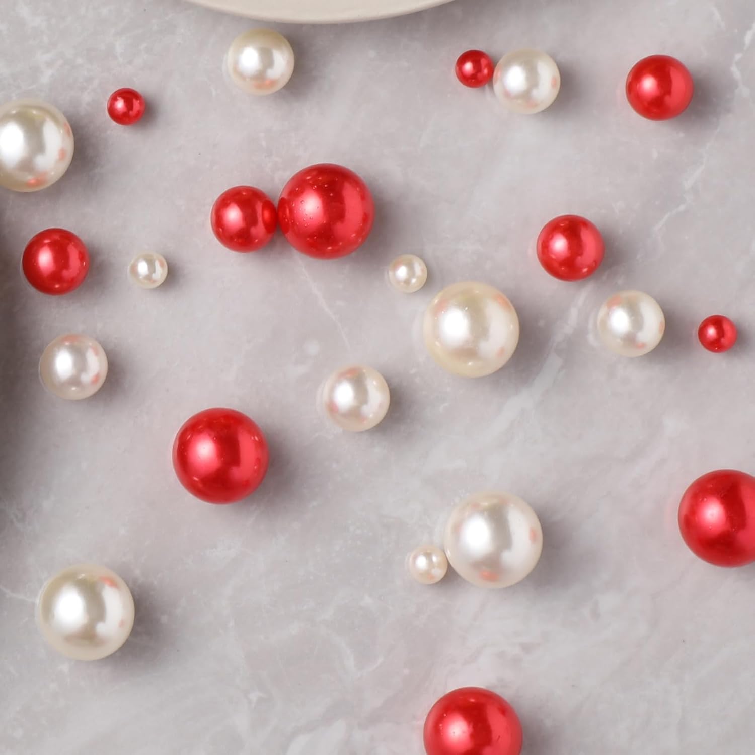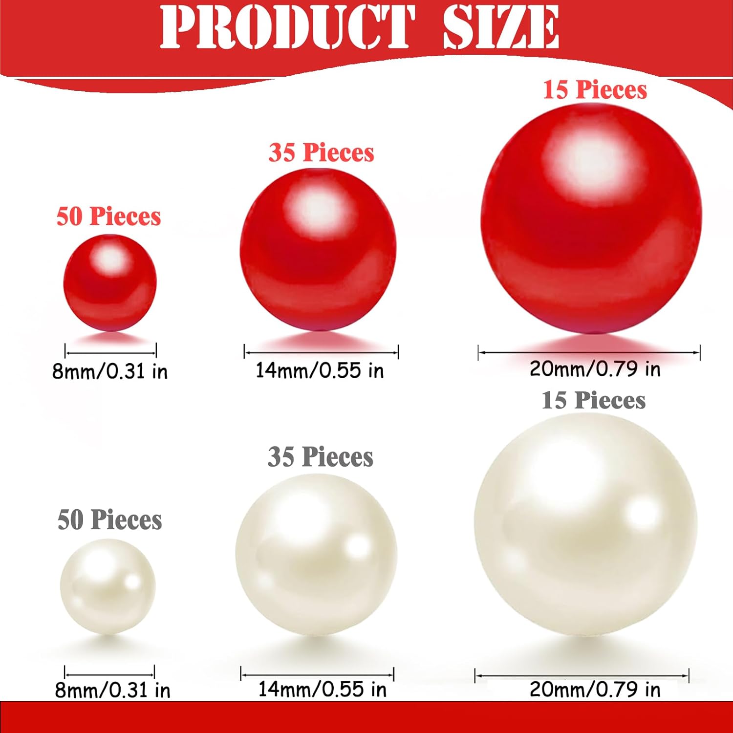 200 Pcs Vase Filler Beads White and Red Pearl Beads for Vase No Hole Pearls for Centerpieces Vases Home Table Party Decor Wedding DIY 8/14/20mm