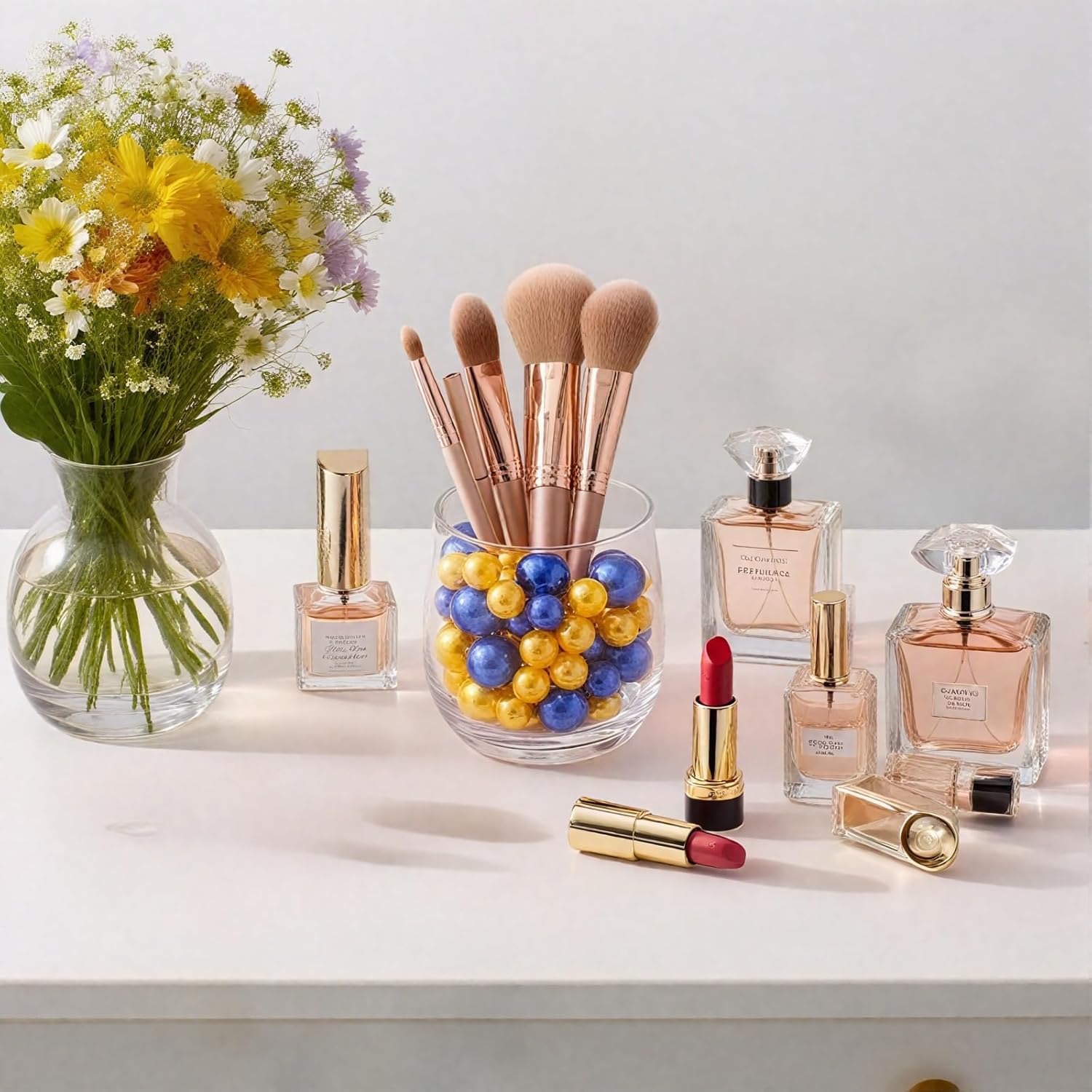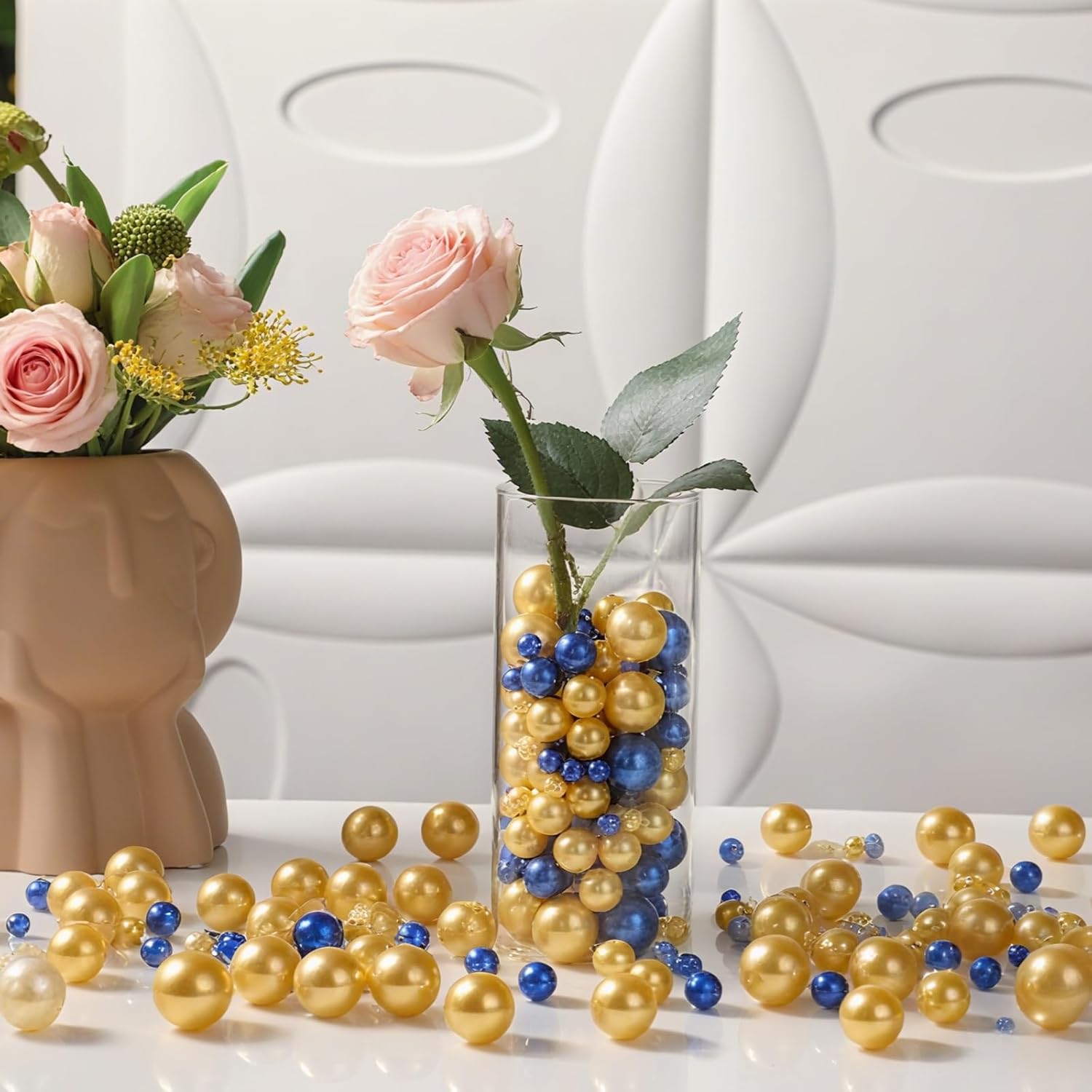 200 Pcs Vase Filler Beads Gold and Blue Pearl Beads for Vase No Hole Pearls for Centerpieces Vases DIY Home Table Party Decor DIY Wedding 8/14/20mm