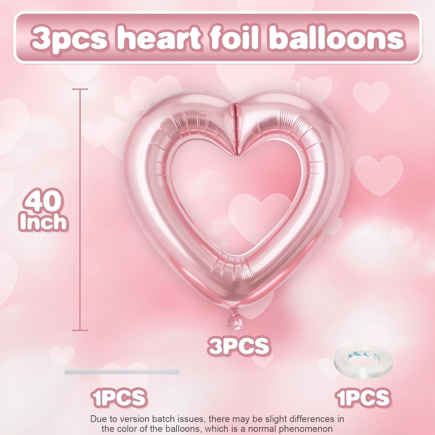 - Package: This set includes 3pcs of 40inch pink hollow out heart foil balloons,1 ribbon,and 1 straw.The generous size makes these balloons perfect for transforming any space into a festive celebration venue, whether you're decorating for a wedding arch, photo backdrop, or party centerpiece.