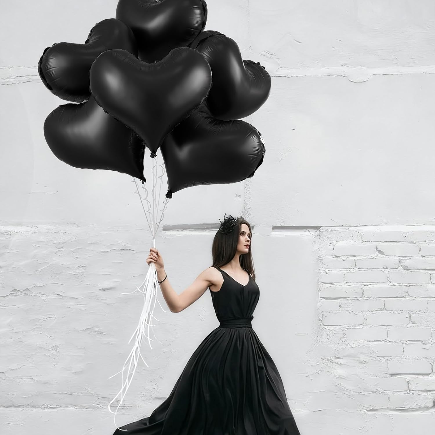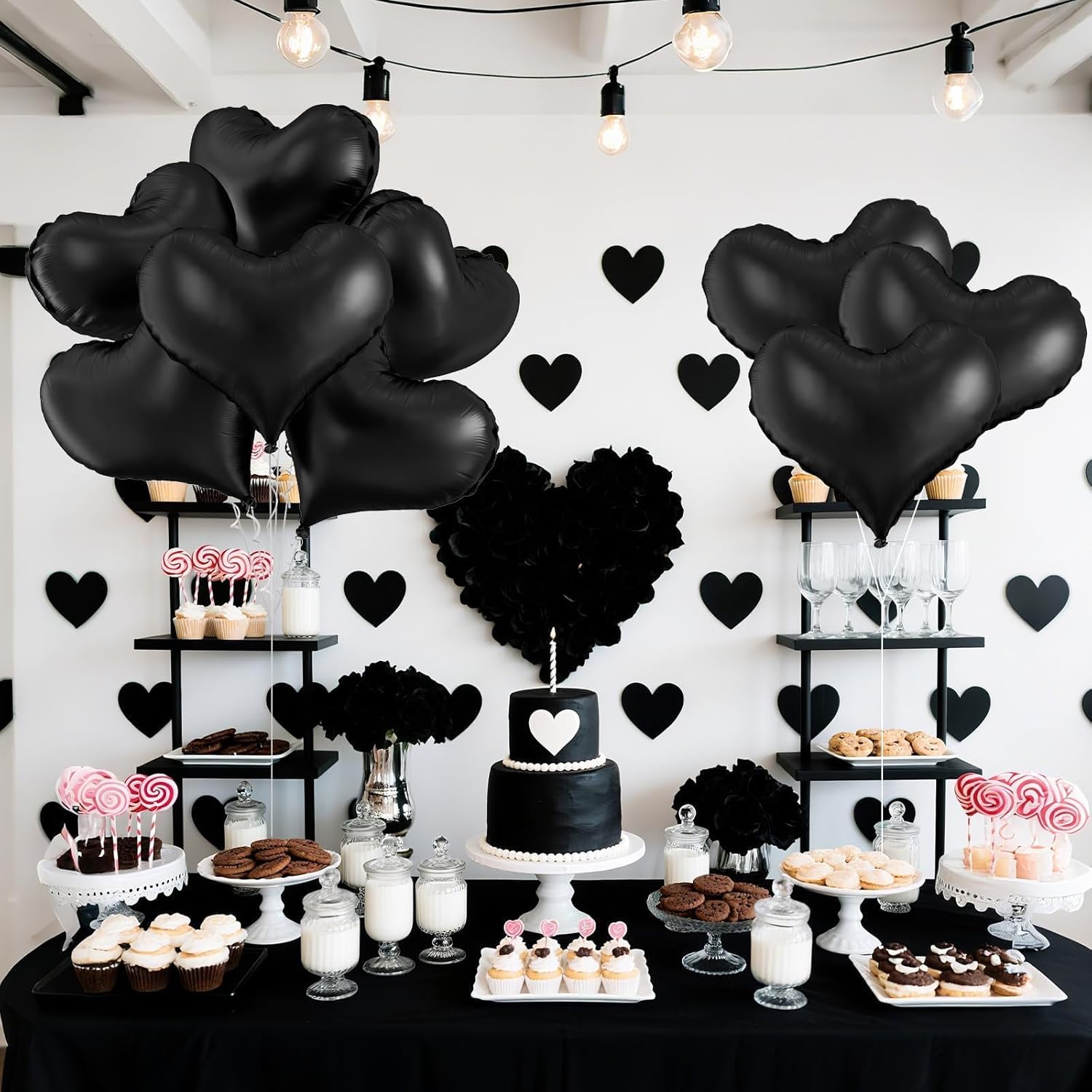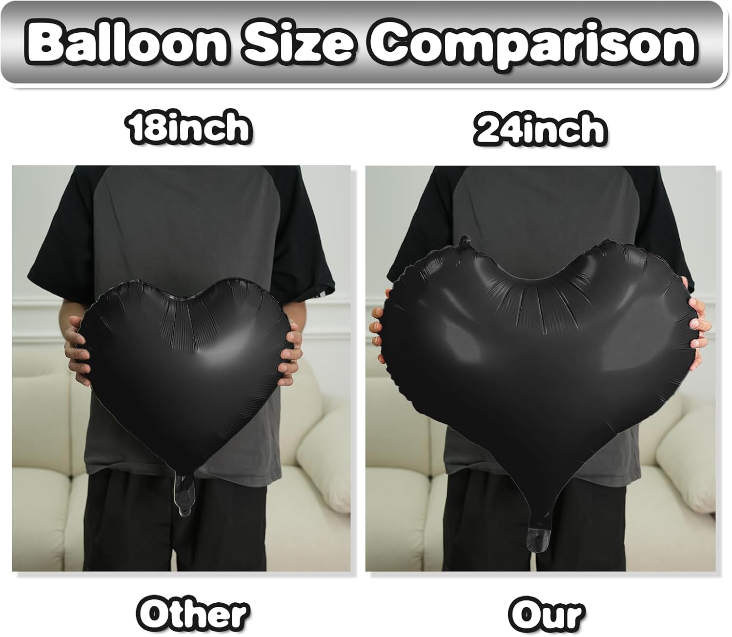 - Package: This set includes 6pcs of 24inch black heart foil balloons,1 ribbon,and 1 straw.The generous size makes these balloons perfect for transforming any space into a festive celebration venue, whether you're decorating for a wedding arch, photo backdrop, or party centerpiece.
