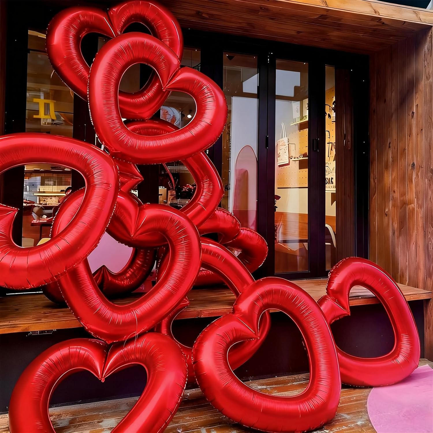 - Package: This set includes 3pcs of 40inch red hollow out heart foil balloons,1 ribbon,and 1 straw.The generous size makes these balloons perfect for transforming any space into a festive celebration venue, whether you're decorating for a wedding arch, photo backdrop, or party centerpiece.