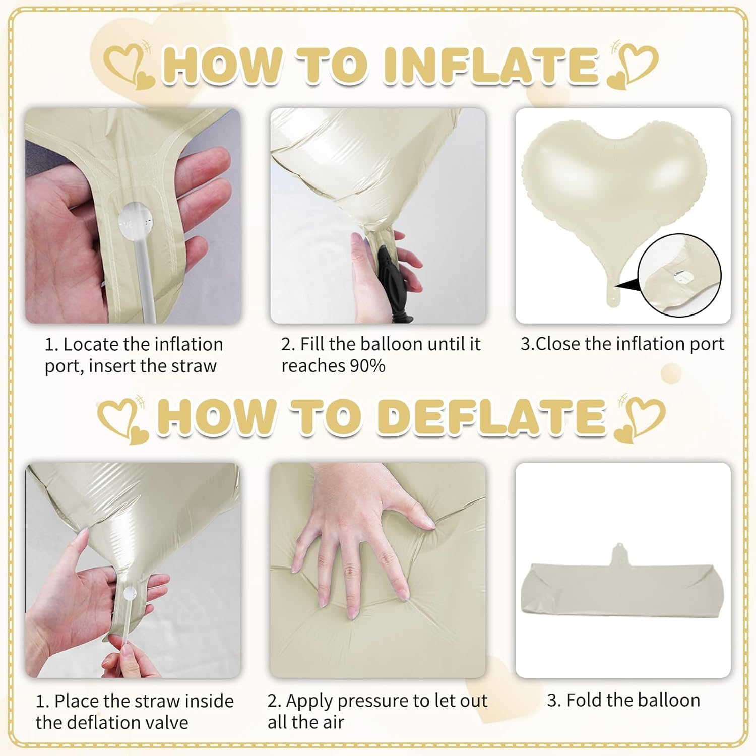 - 24 Inches Heart Balloons - Package contains 6 pcs cream and white heart balloons, 1pc straw and 1pc ribbon.The boho heart shaped balloons are ideal for any party. 24 inch is big and special enough to decorate your party.