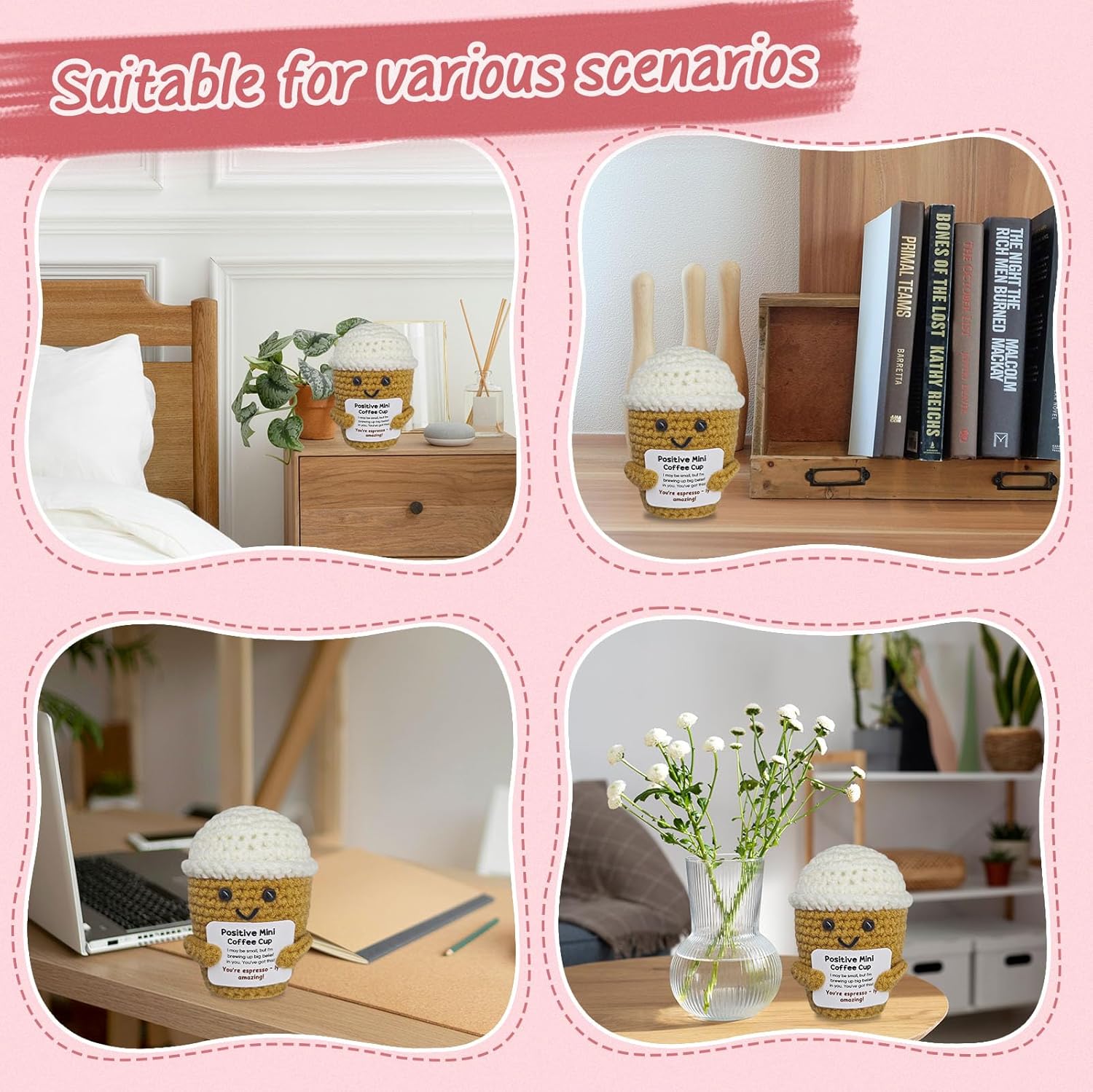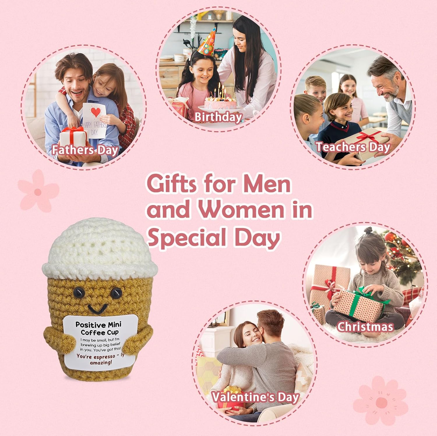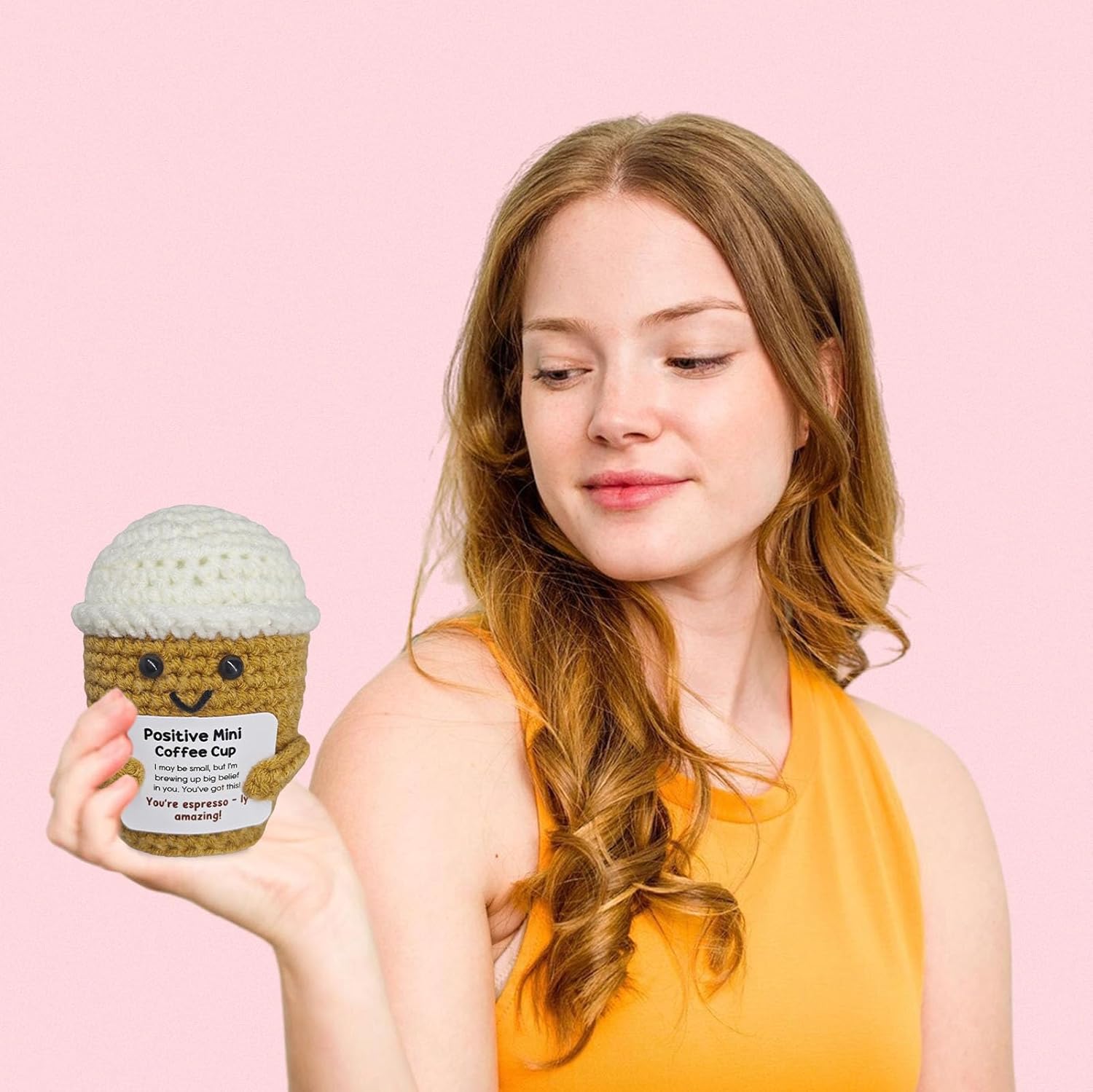 Coffee Lovers Birthday Gifts for Women Men,Positive Crochet Espresso Themed Brithday Presents,Inspirational Encouragement Gift,Office Desk Decor,Coffee Gift