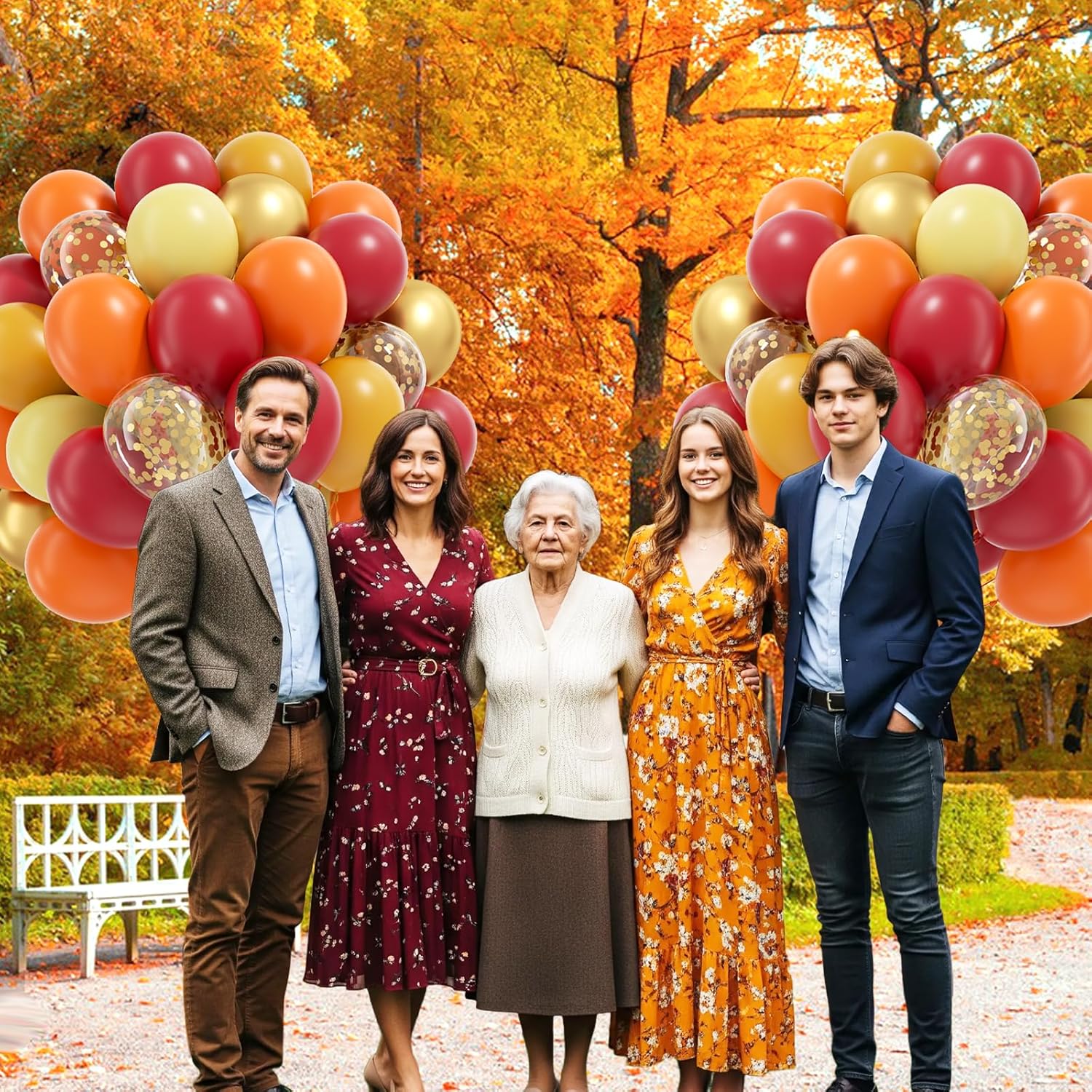 - Package Include: The fall balloons include 12inch burgundy balloonsx15, 12inch burnt orange balloonsx15, 12inch mustard yellow balloonsx5, 12inch pastel yellow balloonsx10, 10inch metallic gold balloonsx10, 12inch gold confetti balloonsx5, glue dotsx20, orange ribbonx1