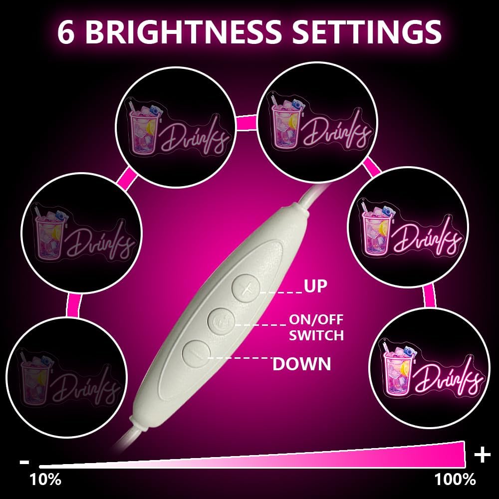 - 【High-quality Materials】:Our neon logo is handmade from high quality back panels and soft silicon pipes. Bright, heat-free, energy-efficient, durable and environmentally friendly. You just hang the neon lights on the wall or anywhere you want and you will experience a unique atmosphere.