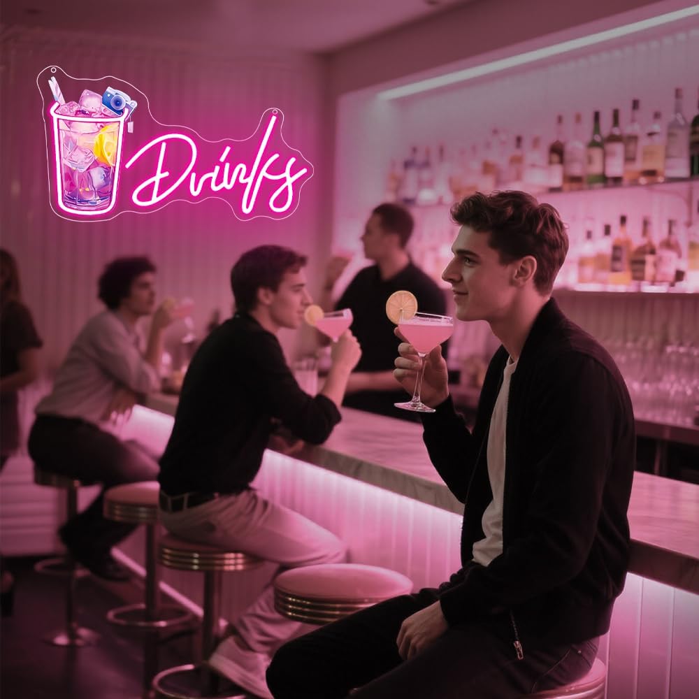 Drinks Neon Signs for Wall Decor,Cool Cocktail Glass LED Sign Art Wall Lights,Lemonade Drinks Neon Signs for Beer Bar Decor,Pub Party,Night Club,Man Cave,Business,Shop