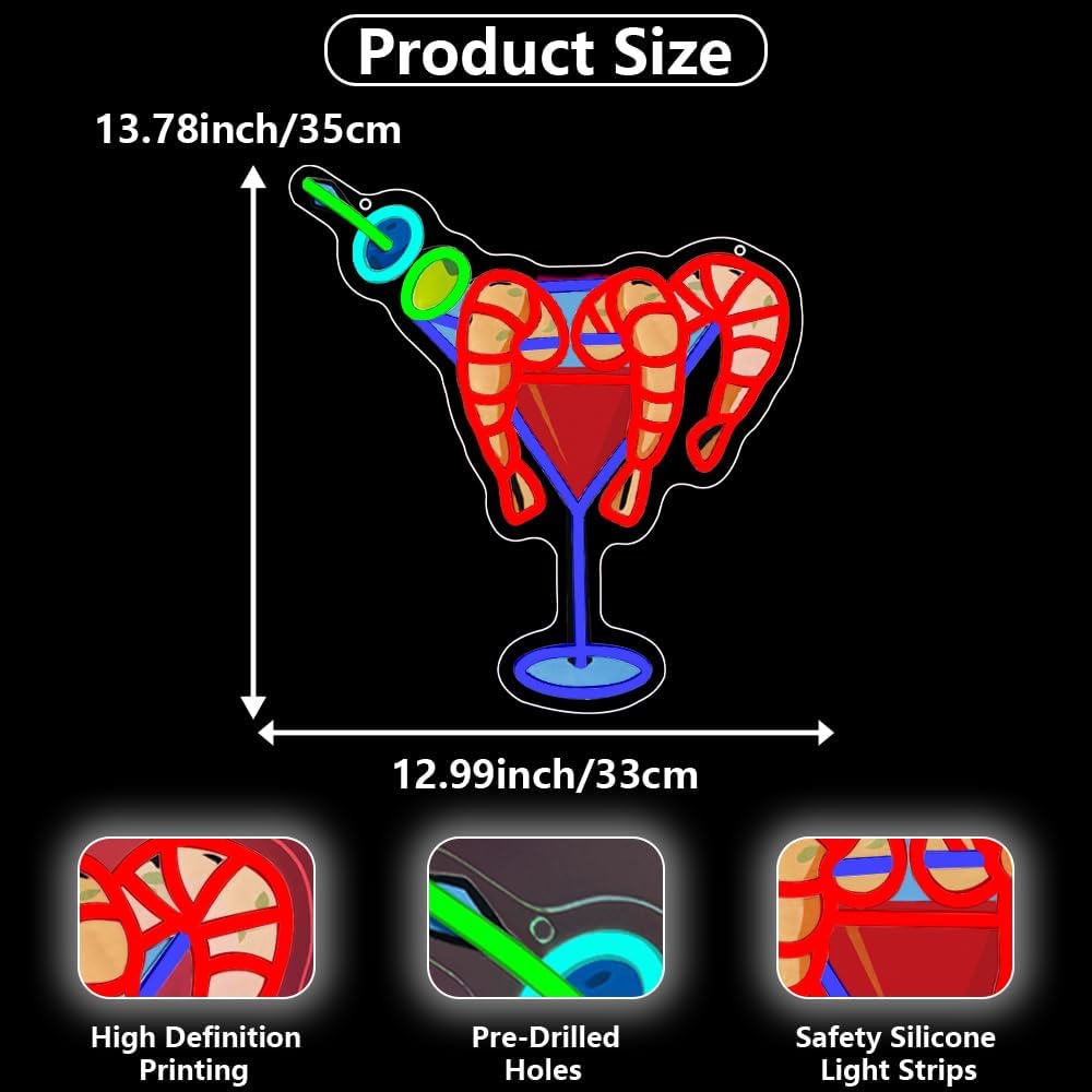 Cocktails Drinks Neon Signs for Wall Decor,Shrimp LED Neon Sign for Cocktails Bar Art Wall Lights,Adjustable Brightness Drinks Neon Sign for Beer Bar Decor,Restaurant,Pub Party,Night Club,Business