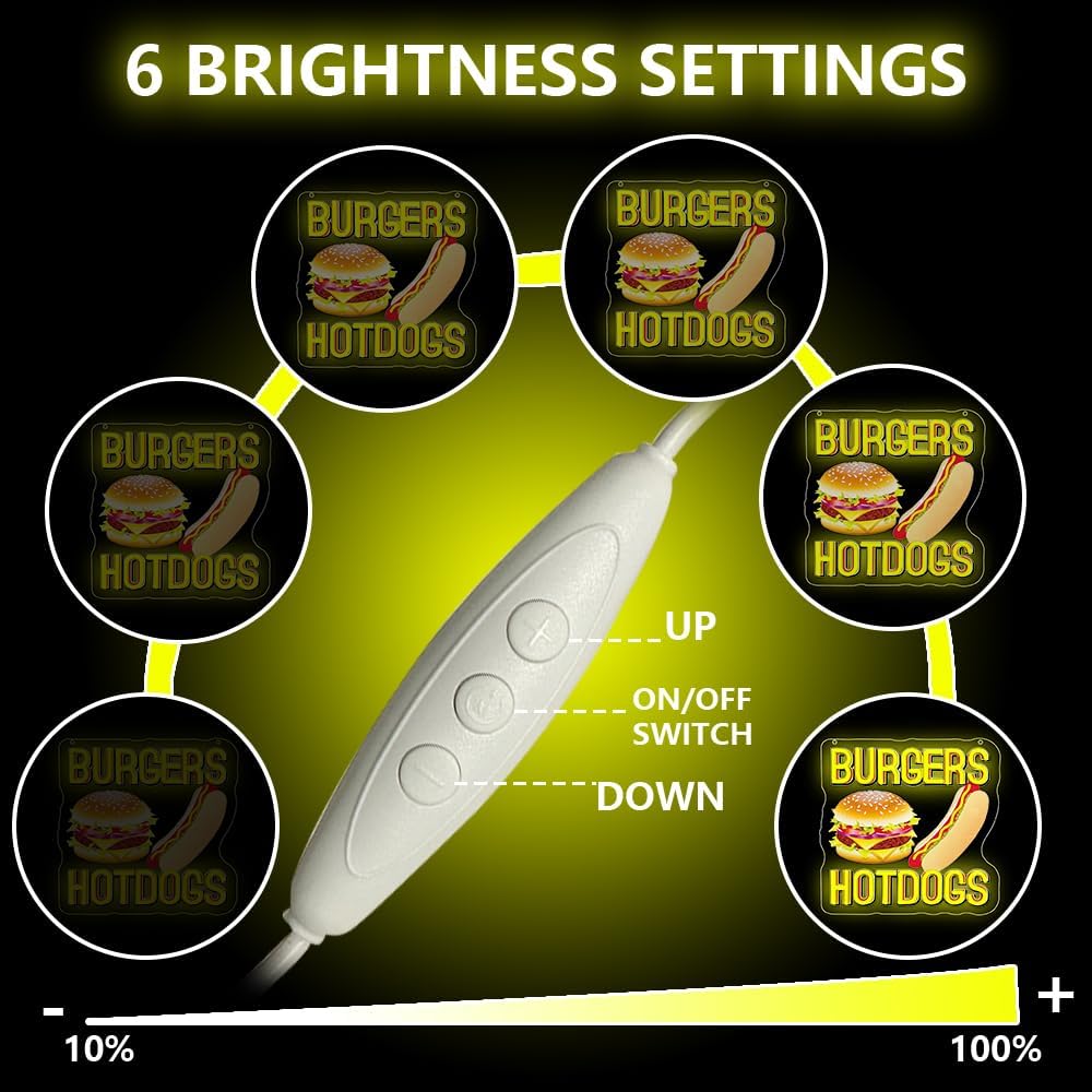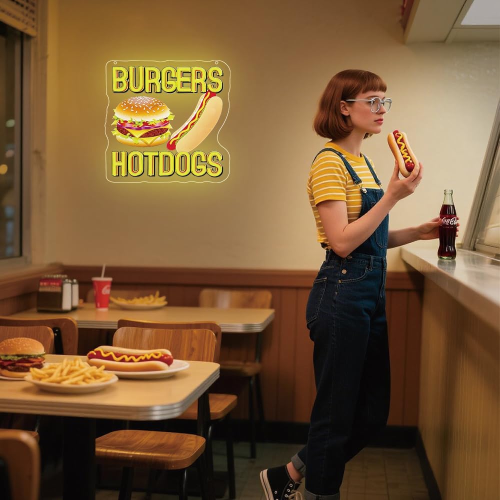 Hot Dogs Burgers Neon Signs for Wall Decor,Hot Dogs Led Neon Sign Party Decorations,Dimmable Hamburger Led Lights Sign for Business Food Restaurant Bar Birthday Party Decor,Hot Dog Shop Decor