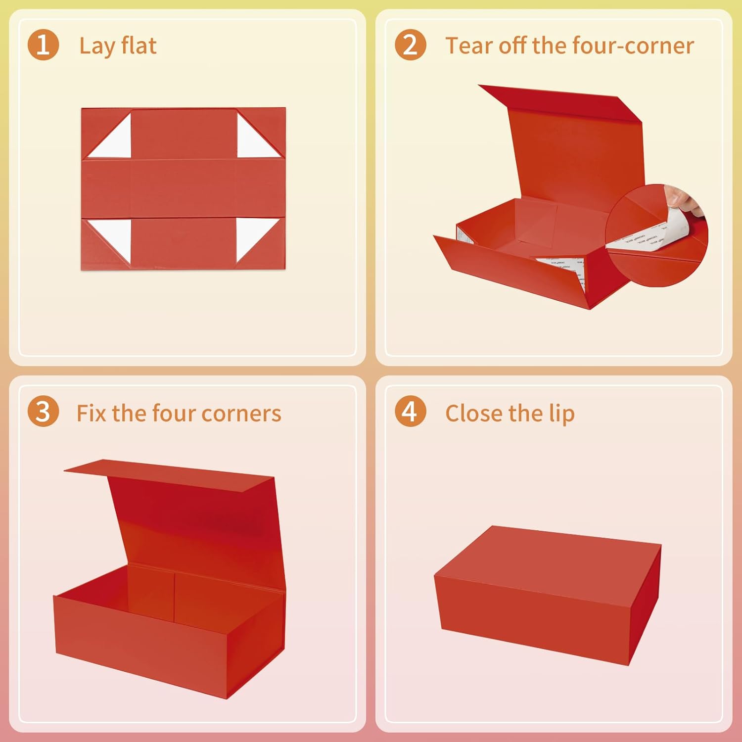 - EASY TO ASSEMBLE: For easy transportation,the gift box is designed to be folded. Unpack the package,tear off the white triangle sticker,paste and assemble the box.