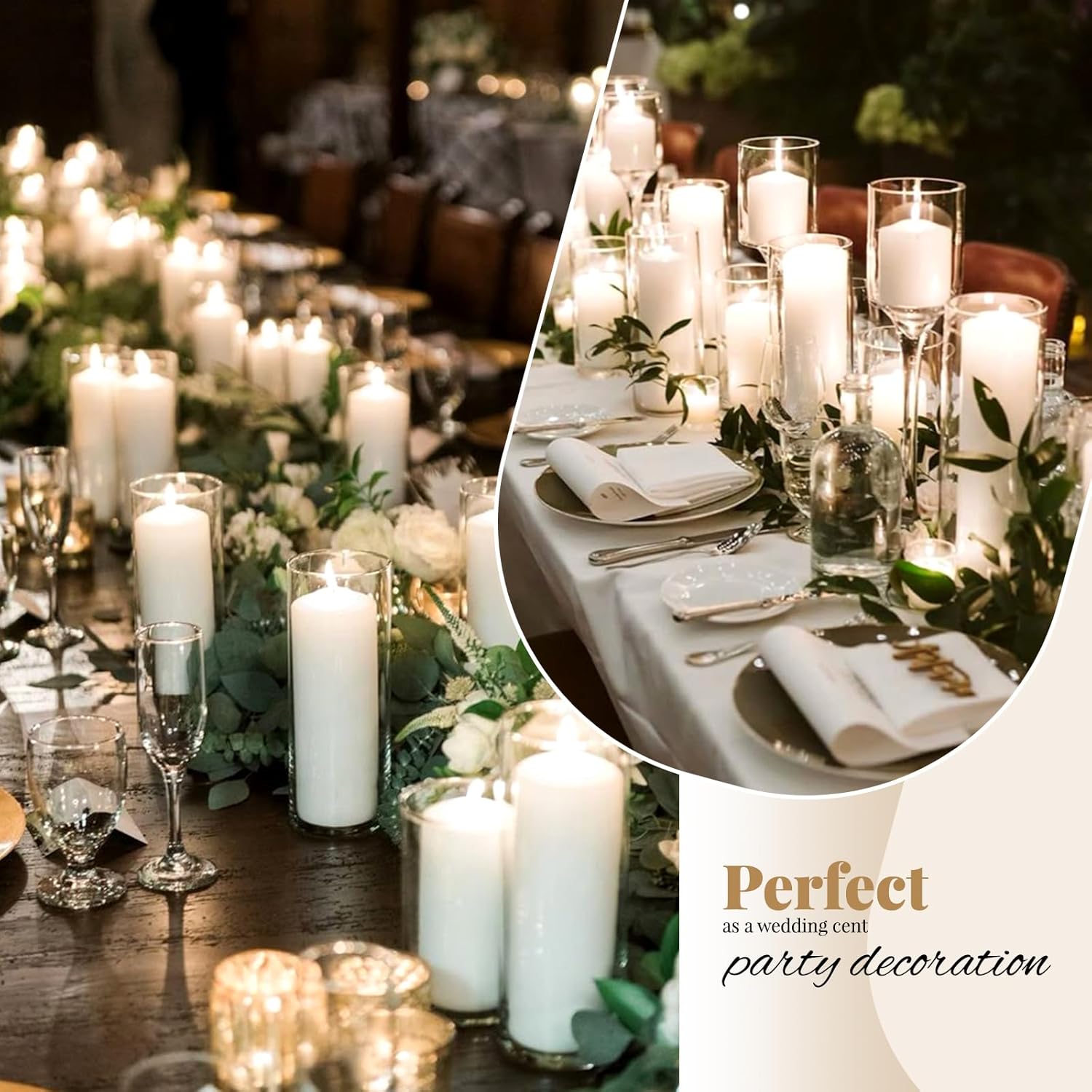 - ✅ Premium High-borosilicate Glass: Crafted from food-grade, heat-resistant borosilicate glass, our vases for centerpieces ensures exceptional clarity and durability. Designed with a solid base and smooth, polished rim, this flower vase provides stability and safety during use. This sturdy material can withstand greater temperature changes than regular glass. Perfect for use as a hurricane floating candle holder or for pillar candle holder.