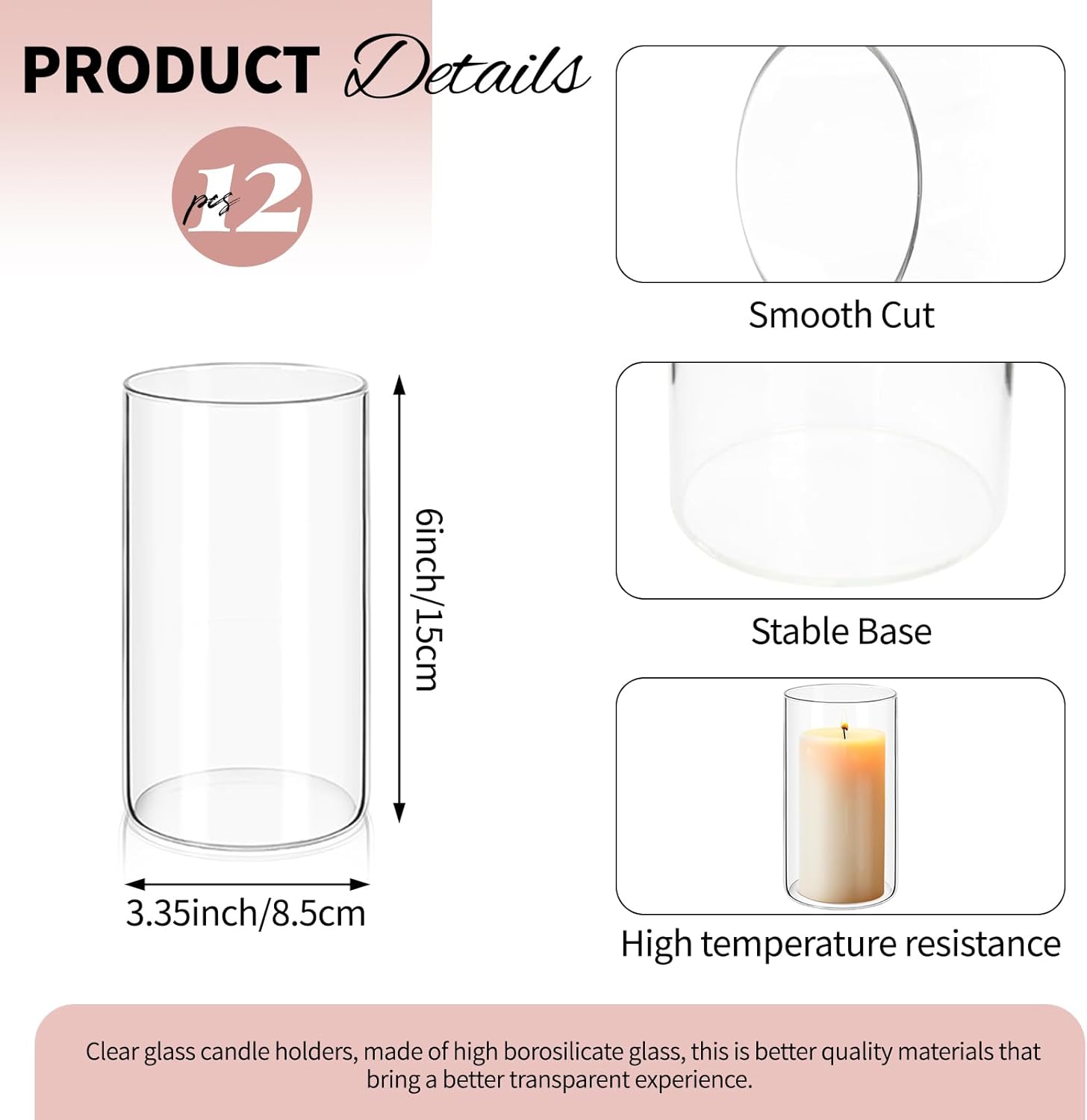 12Pack Glass Cylinder Vases for Centerpieces - 6 Inch Tall Flower Vase for Wedding Decorations, Floating Candle Holder Vase Bulk,Glass Hurricane Candle Holders for Table Shelf, Party, Home Decor