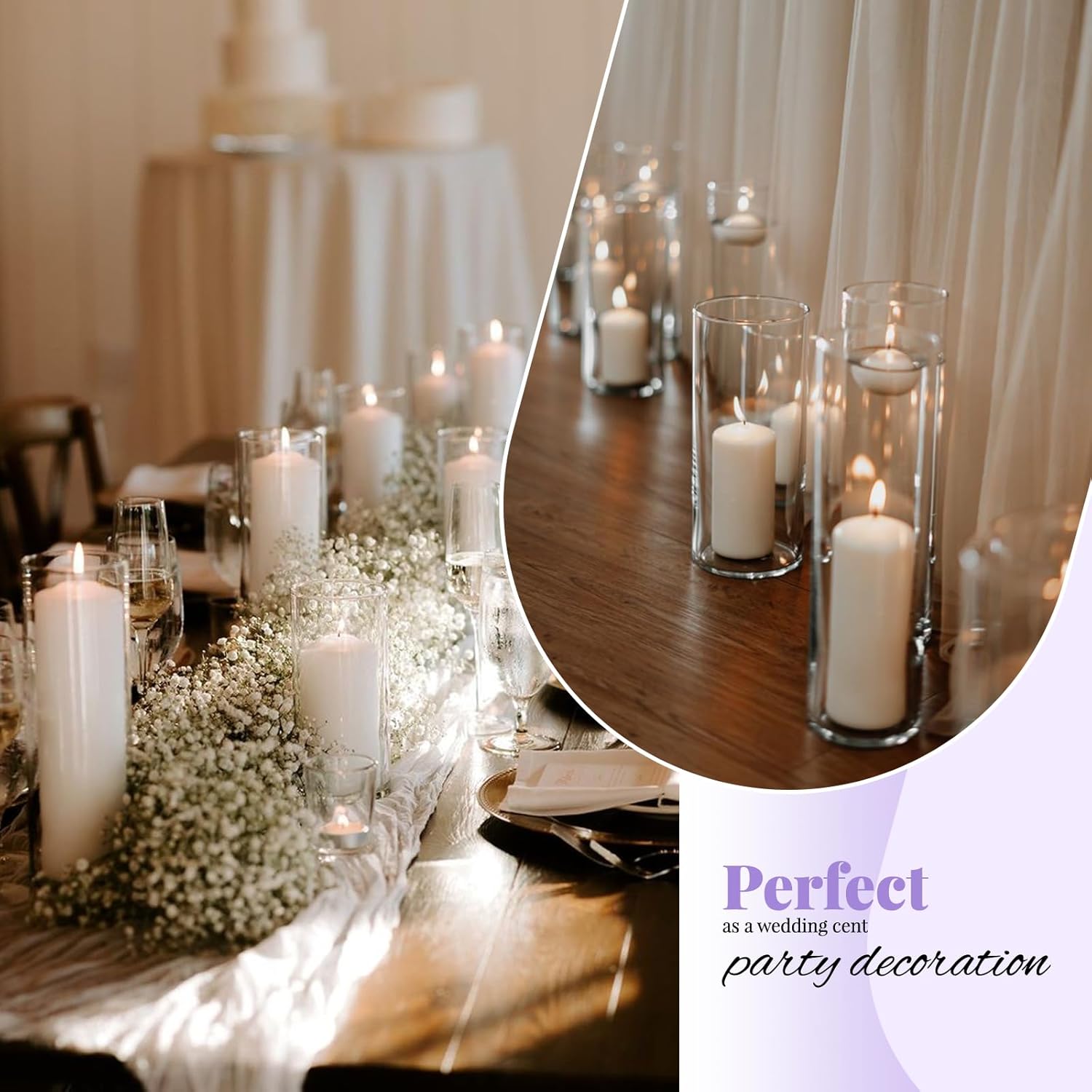 - ✅ Premium High-borosilicate Glass: Crafted from food-grade, heat-resistant borosilicate glass, our vases for centerpieces ensures exceptional clarity and durability. Designed with a solid base and smooth, polished rim, this flower vase provides stability and safety during use. This sturdy material can withstand greater temperature changes than regular glass. Perfect for use as a hurricane floating candle holder or for pillar candle holder.