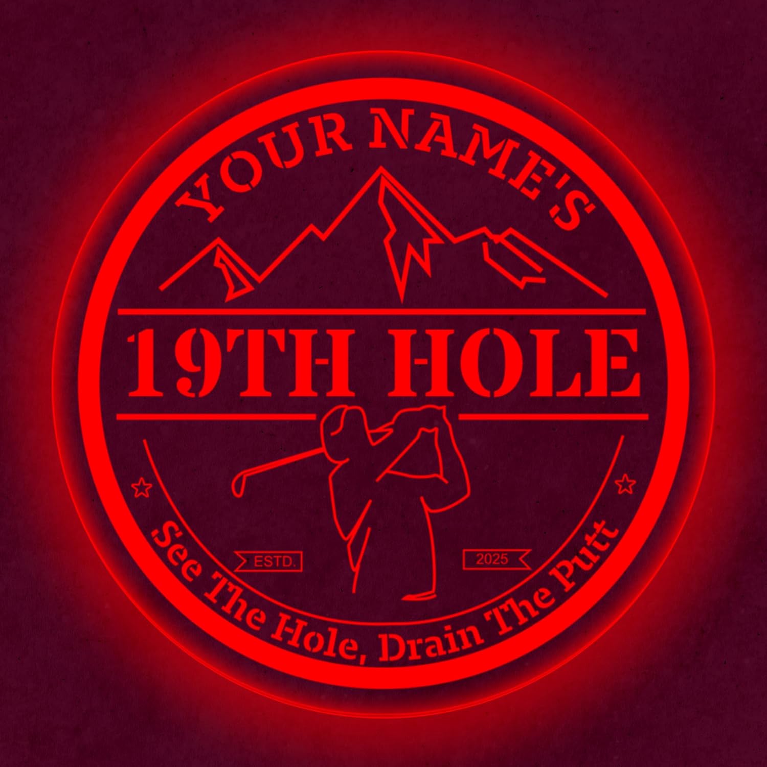Custom 19th Hole Golf Bar Sign – Personalized LED Color Changing Acrylic Wall Decor for Home Bar, Man Cave, or Patio (19th Hole, 12 INCHES)