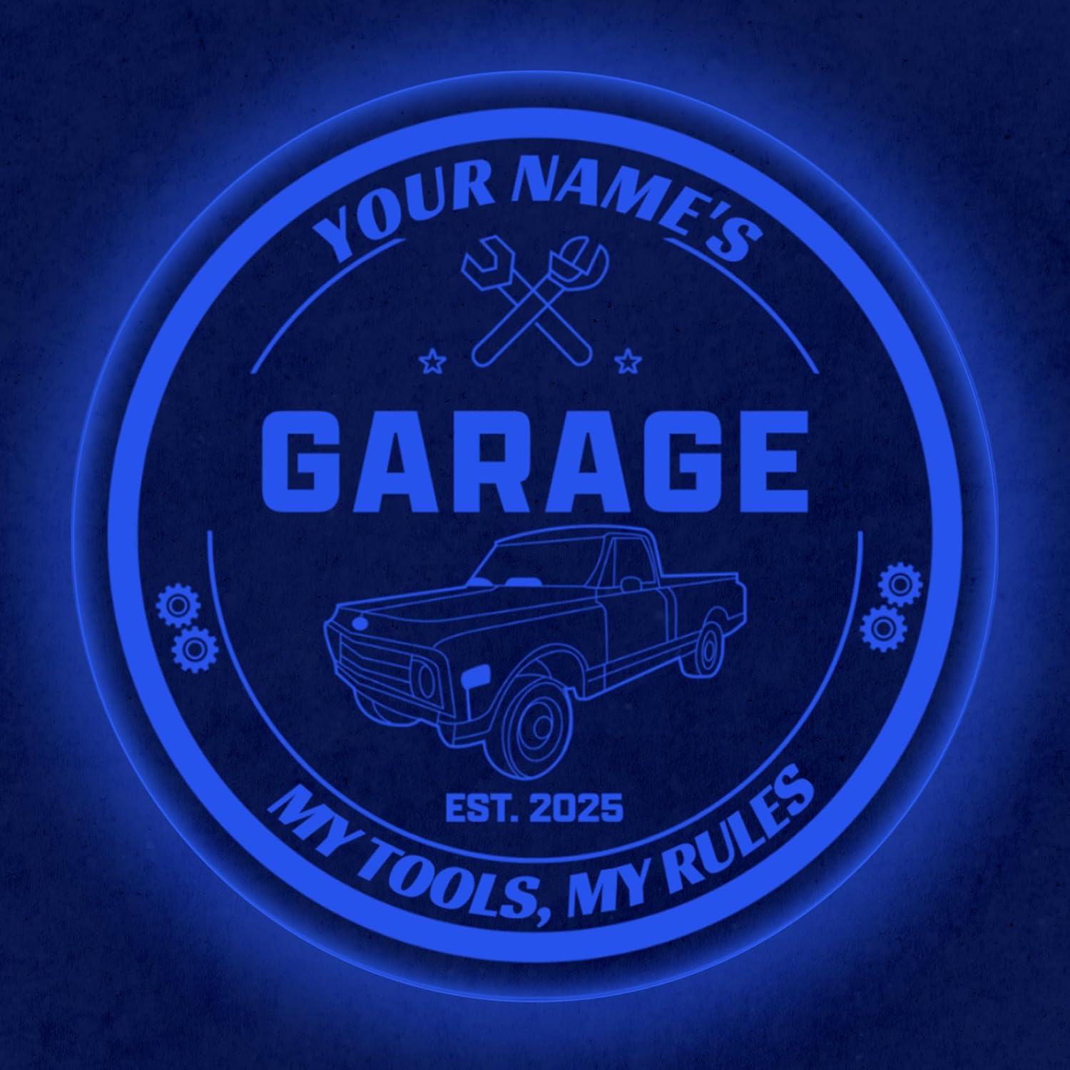 - Personalized Garage Truck Sign with LED Lights: Add your name, shop name, or fun phrase to this laser engraved acrylic sign with bright color changing LEDs for a bold garage or workshop vibe