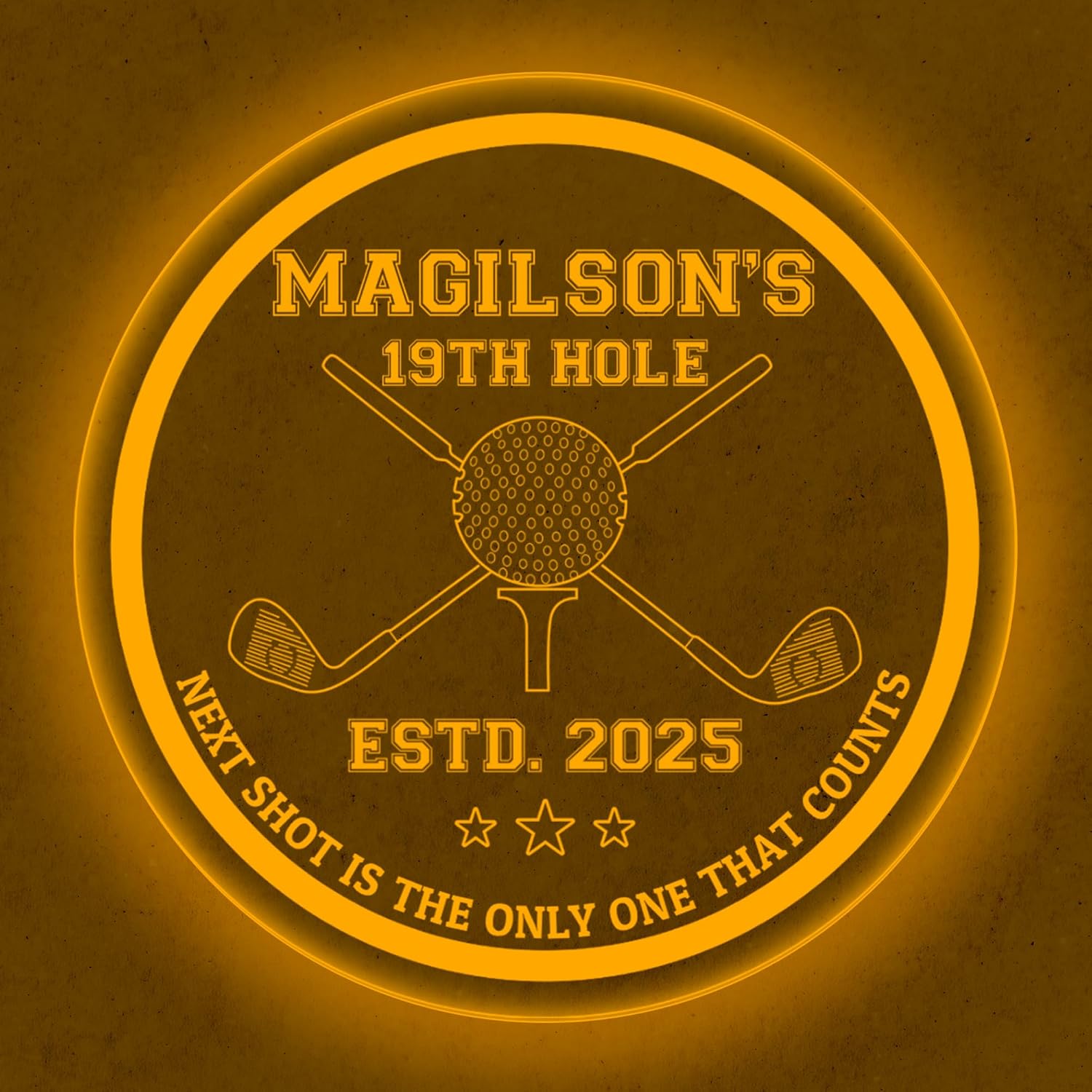 - Custom Golf Bar Sign with LED Lights: Personalize this laser engraved acrylic golf sign with your name or fun phrase and choose vibrant color changing LEDs to match your bar, patio, or game room theme; comes with a remote for easy control of colors and lighting modes