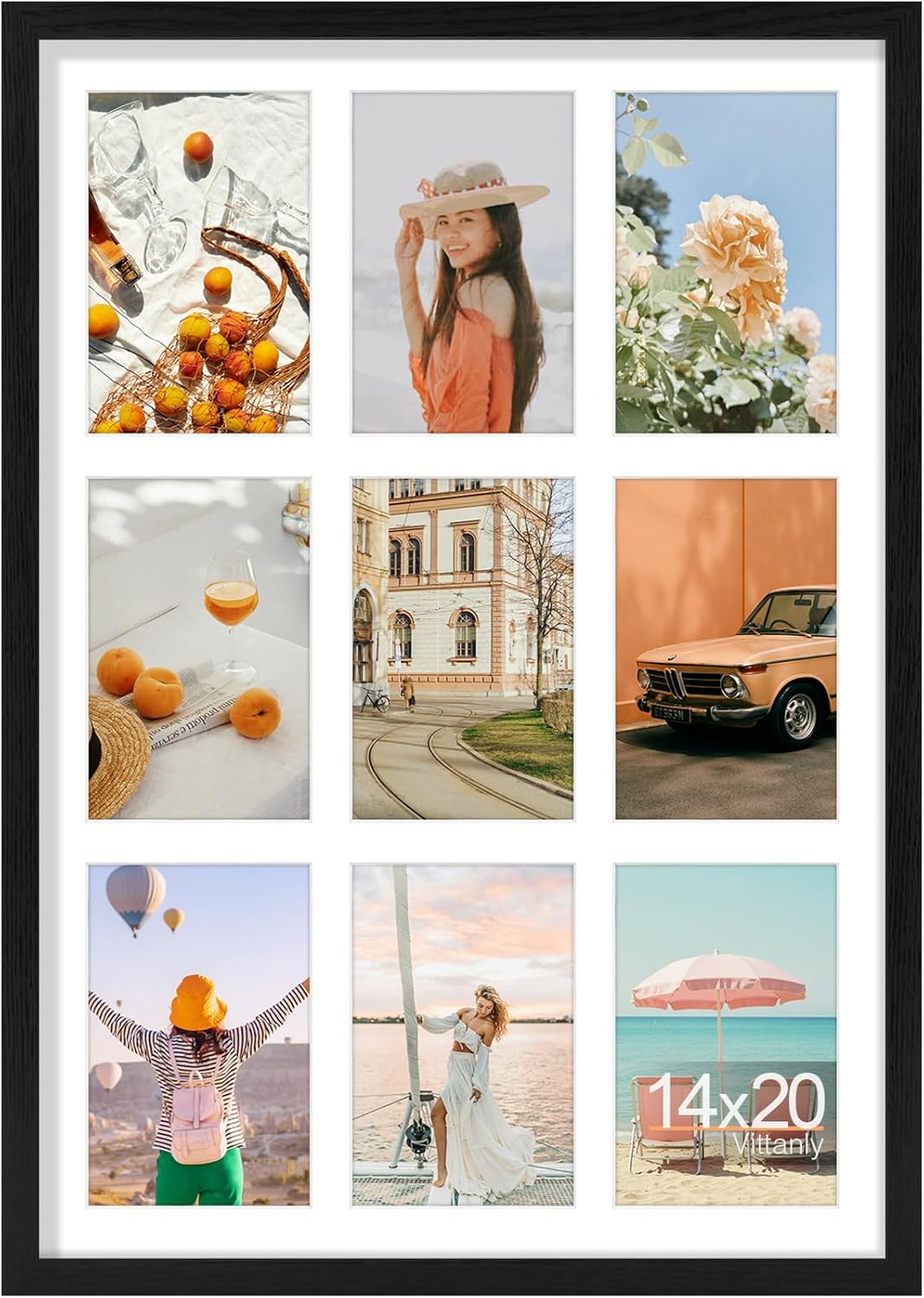 Vittanly 14x20 Collage Picture Frame, Displays 9Pcs 4x6 Pictures with Mat, Picture Frames Collage Wall Decor for Horizontal or Vertical Display, Black, 1 Pack