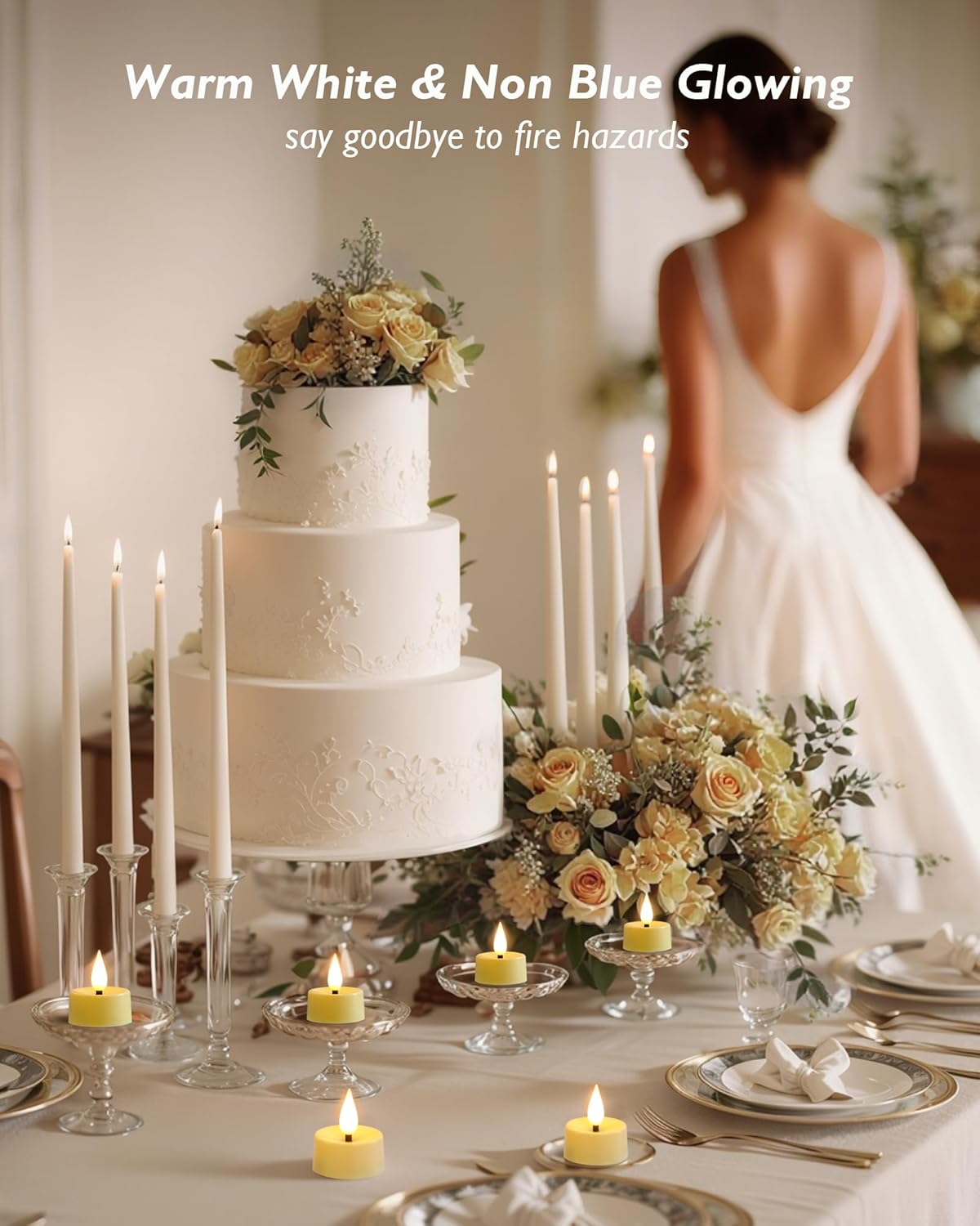 - Realistic Design: Our remote tea candles feature a dripping real wax look simulation , combined with a lifelike 3D black wick, that mimics the flickering glow of traditional candles. Perfect for adding a festive touch to weddings, engagements, Halloween, Christmas, themed party, birthdays, and other special occasions