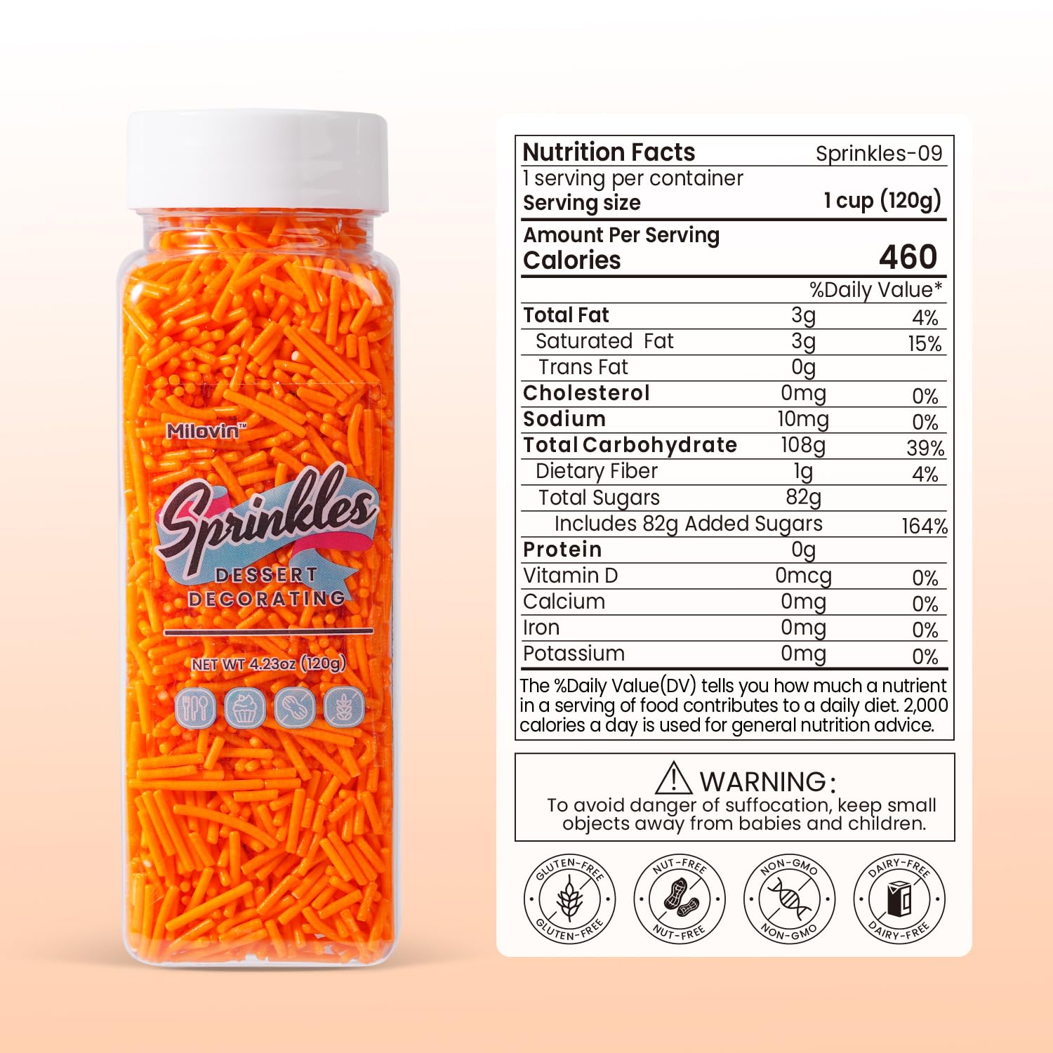 - High Quality and Safe: Made with food-grade ingredients. Edible, Nut-free, Dairy-free, Non-GMO. Our orange jimmies sprinkles meet American food standards and guard your and your family's health