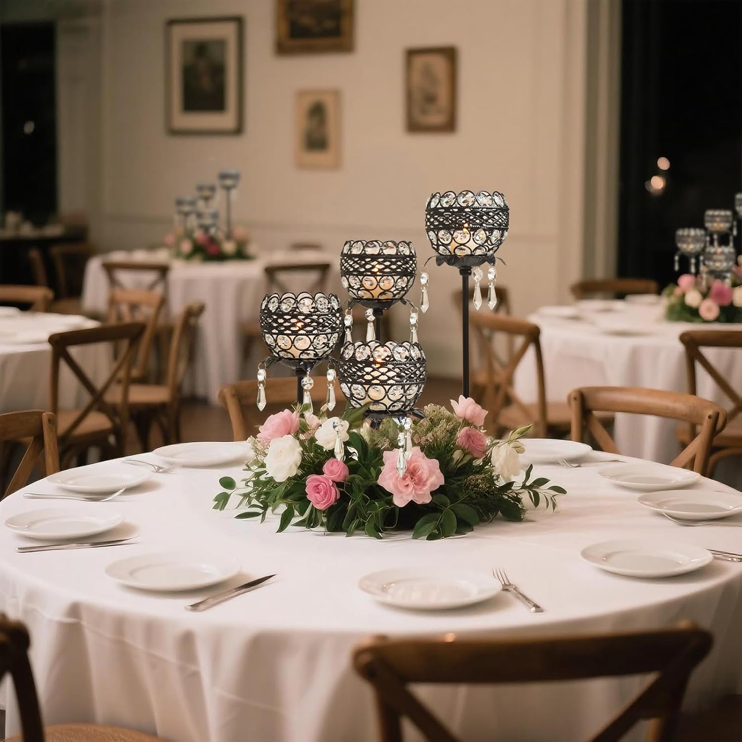 - Dazzling Crystal Bowls & Pendants:Each arm holds a 3.9-inch (10cm) wide crystal bowl with a 1.8-inch (4.5cm) inner tray, designed to securely fit standard tealights while shimmering glass pendants refract light into radiant patterns across your room.