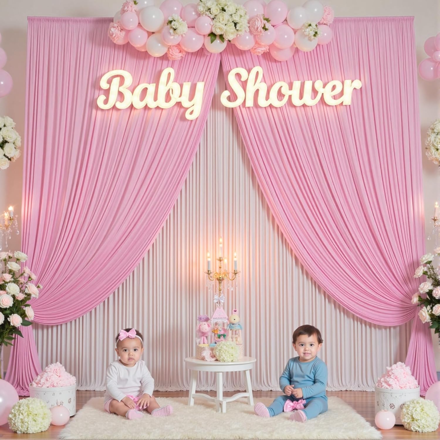 - 【Easy to Setup Pink Drapes for Backdrop】- 4 inch rod pocket are designed on the top of pink curtains for party decoration, fit any stand and poles, enlarged pocket also can be used for tent ceiling drapes or garage pink backdrop drapes. cortinas para fiestas decoracion.