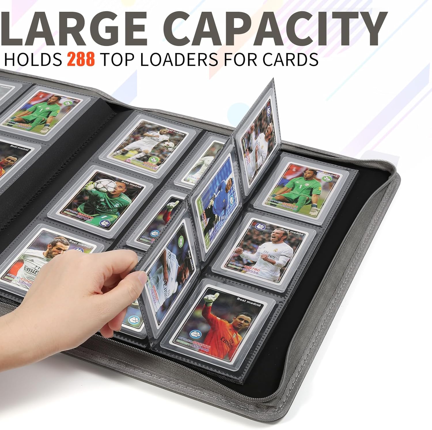 Toploader Binder,Holds 288 Toploaders,9 Pocket Double-Sided Top Loader Binders with Sleeves for 3 x 4'' Toploaders, Card Holder for Trading Cards or Sports Cards (Grey)