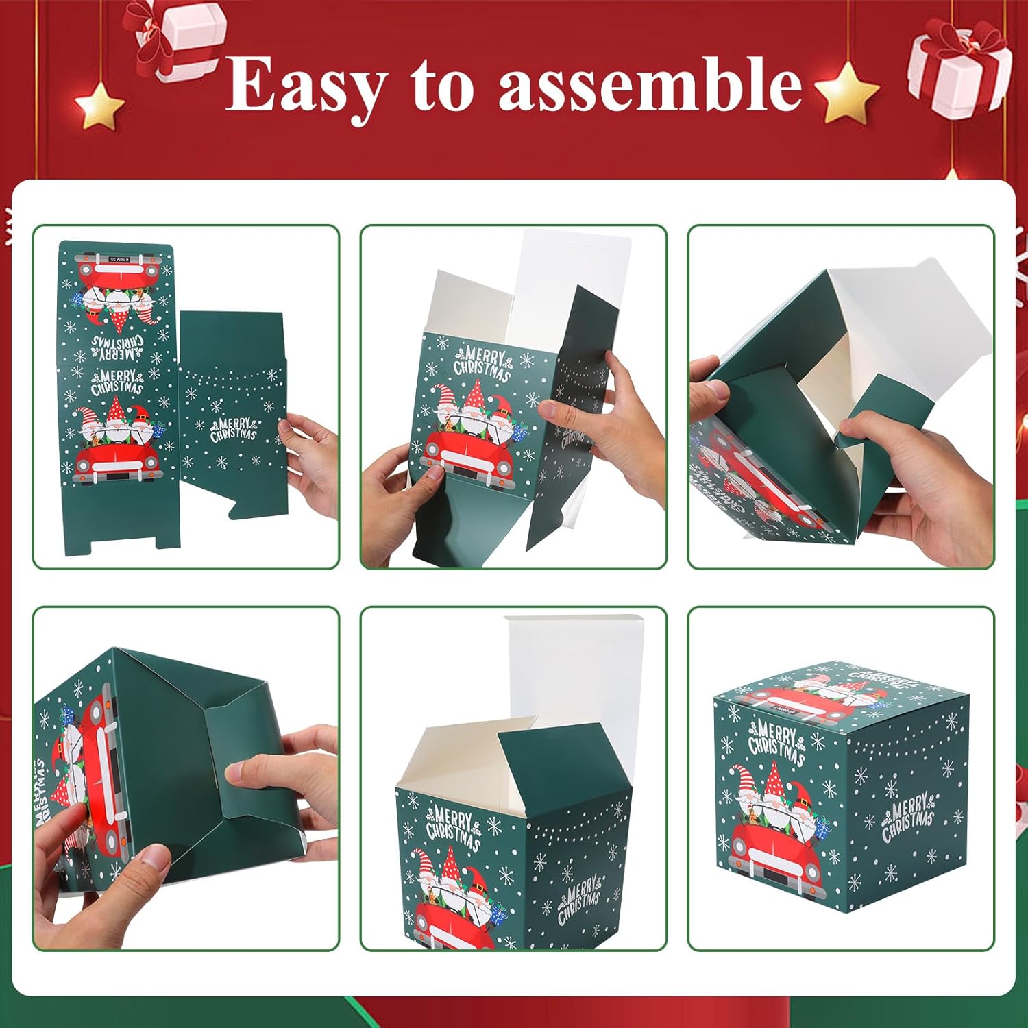 - Easy to Assemble :These christmas goodie boxes are come in flat and pre-folded,easy to be assembled, and are strong enough to hold small glass jars or cups. The neat box design makes them the ideal solution for awkwardly shaped gift items