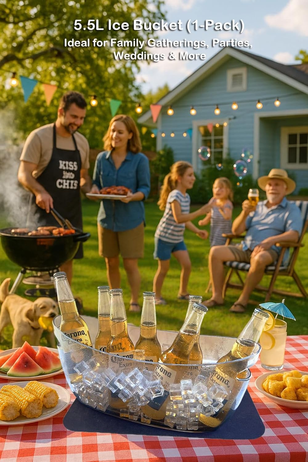 - 🍻5.5L Boat Shape Ice Bucket –With ice, it is recommended to store 5-7 bottles of 330ml beer or 2-3 bottles of 750ml champagne. The wider curved angles of the oval base conform closely to the curves of champagne bottles, minimizing wasted space and thereby allowing more ice or beverages to be accommodated.