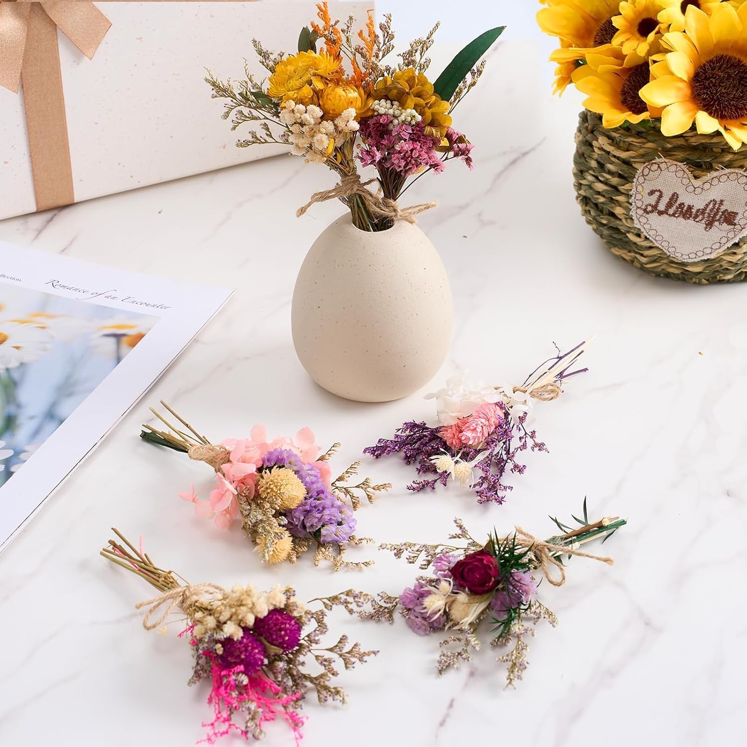 - Abundant Assortment of Bouquets: Includes 11 dried bouquets featuring a mix of natural flowers in assorted colors and styles. Perfect for decorating multiple spaces, crafting DIY floral arrangements, or adding rustic charm to weddings, parties, and seasonal events