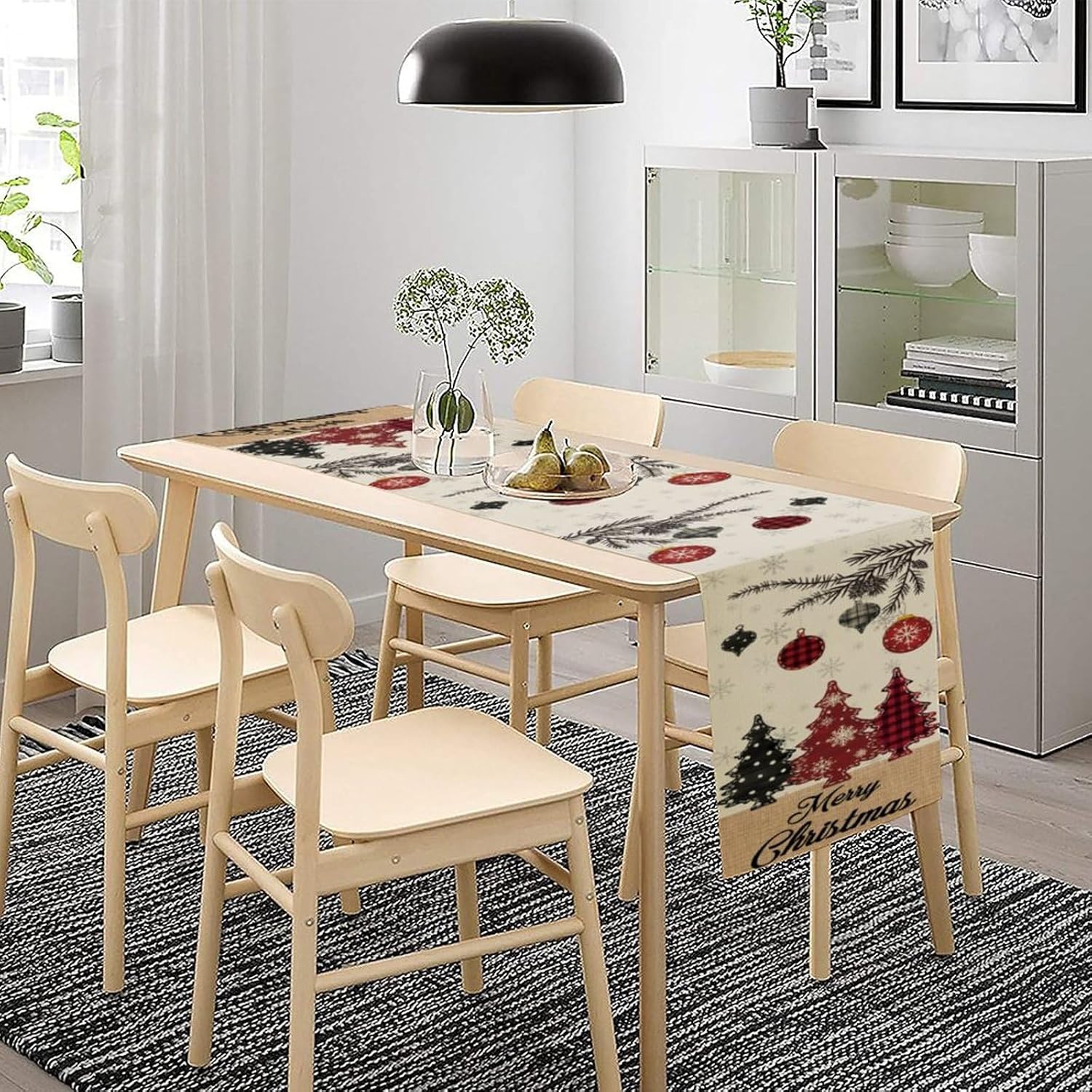 Merry Christmas Table Runner,Winter Xmas Holiday Kitchen Dining Table Decoration for Home Party Decor 13x60 Inch