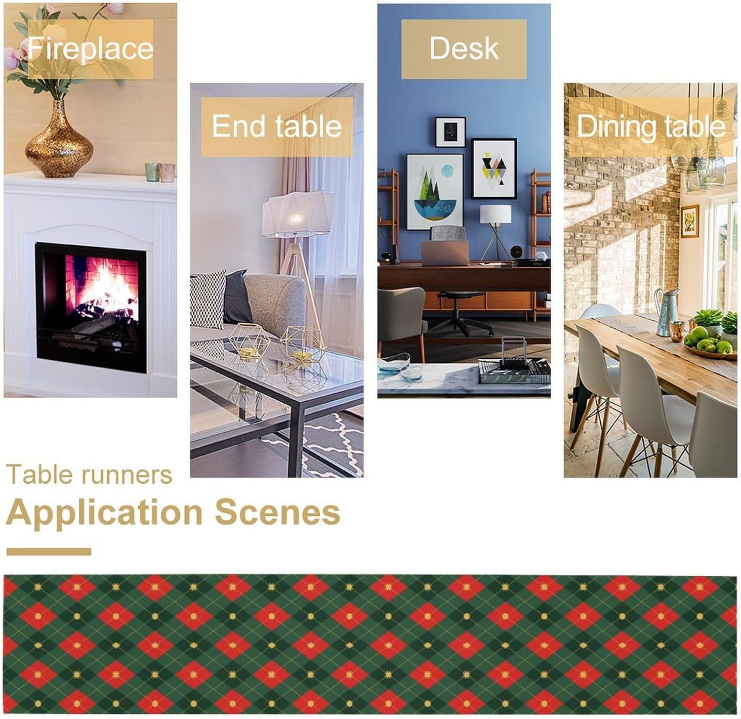 Christmas Table Runner,Green Red Xmas Plaid Table Cloth Kitchen Dining Table Decoration for Home Party Decor 13x90 Inch