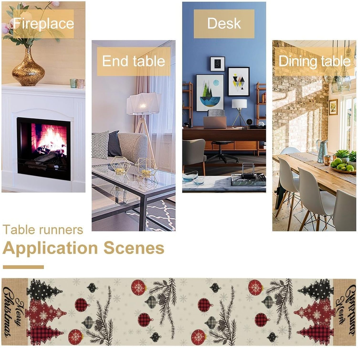 Merry Christmas Table Runner,Winter Xmas Holiday Kitchen Dining Table Decoration for Home Party Decor 13x108 Inch