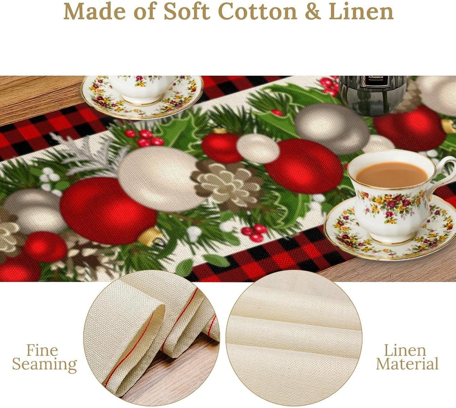 Christmas Table Runner,Seasonal Winter Xmas Holiday Farmhouse Table Cloth Kitchen Dining Table Decoration for Home Party Decor 13x108 Inch